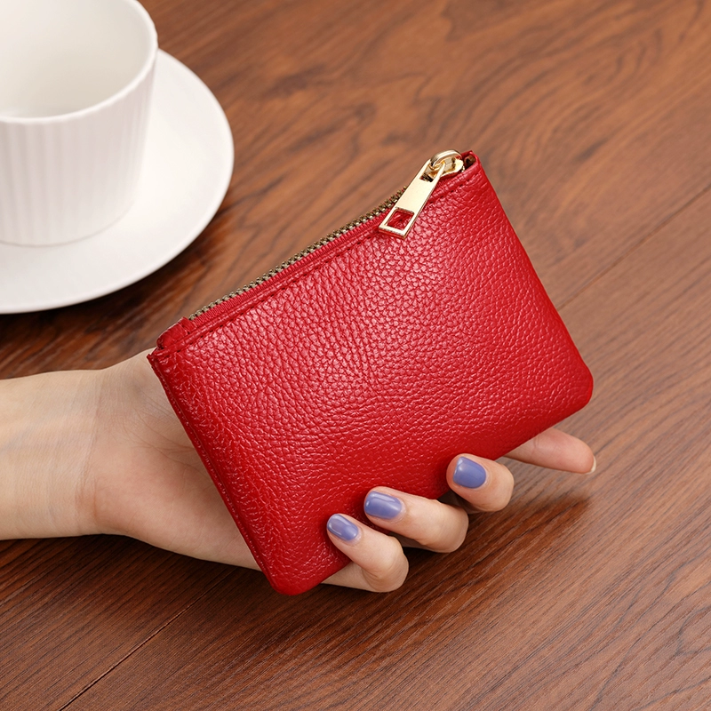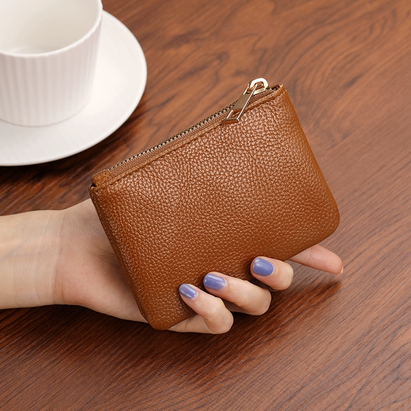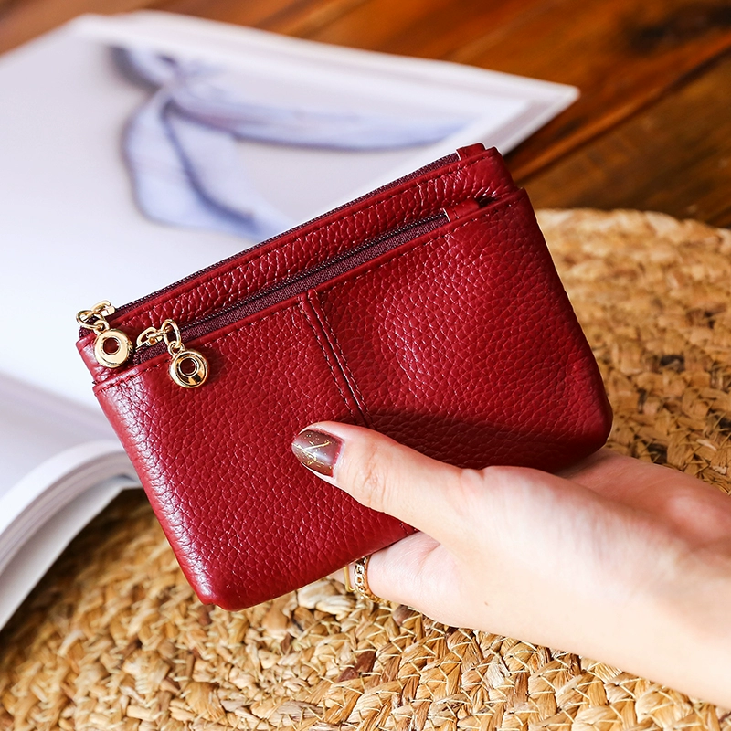 New coin purse women’s card holder key bag soft leather small bag coin bag zipper mini genuine leather texture short wallet