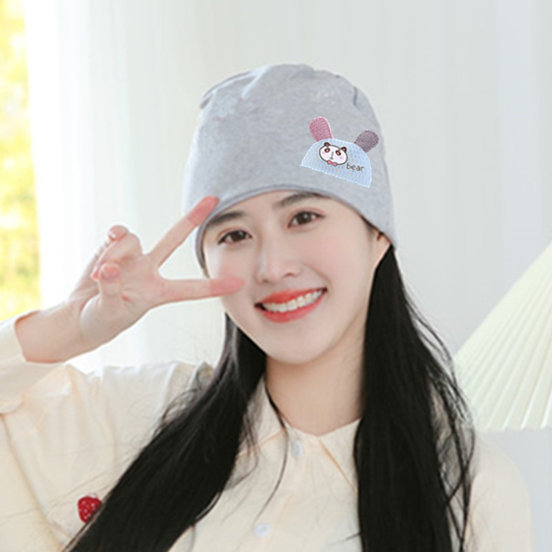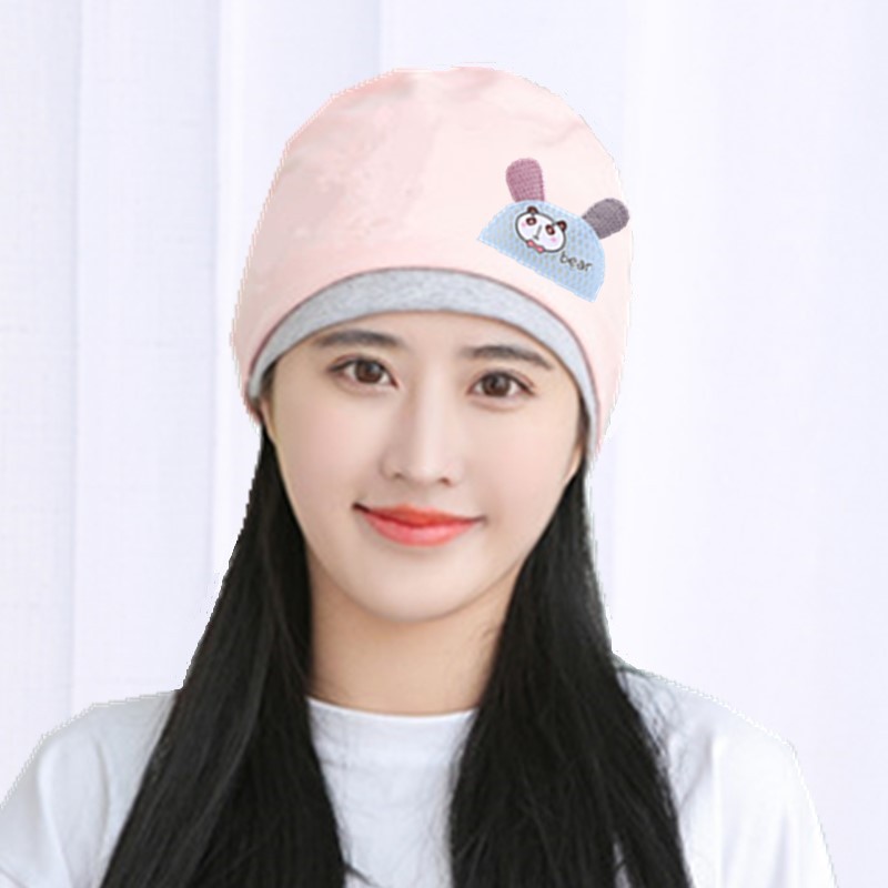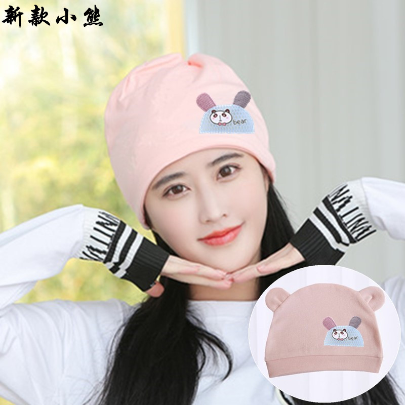 | nameOriginal | New combed cotton sticky flower bear parent-child hat pregnant women multi-functional pile hat soft brim contrast color hat confinement headscarf |