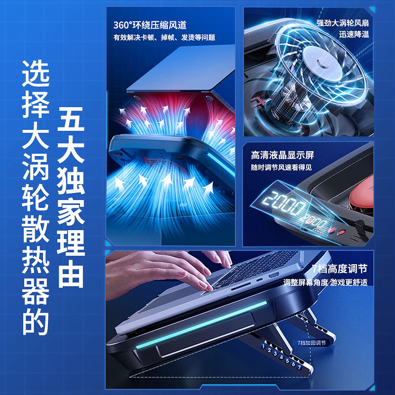 New compressed air type RGB laptop radiator computer fan cooling artifact large turbine cooling bracket fan