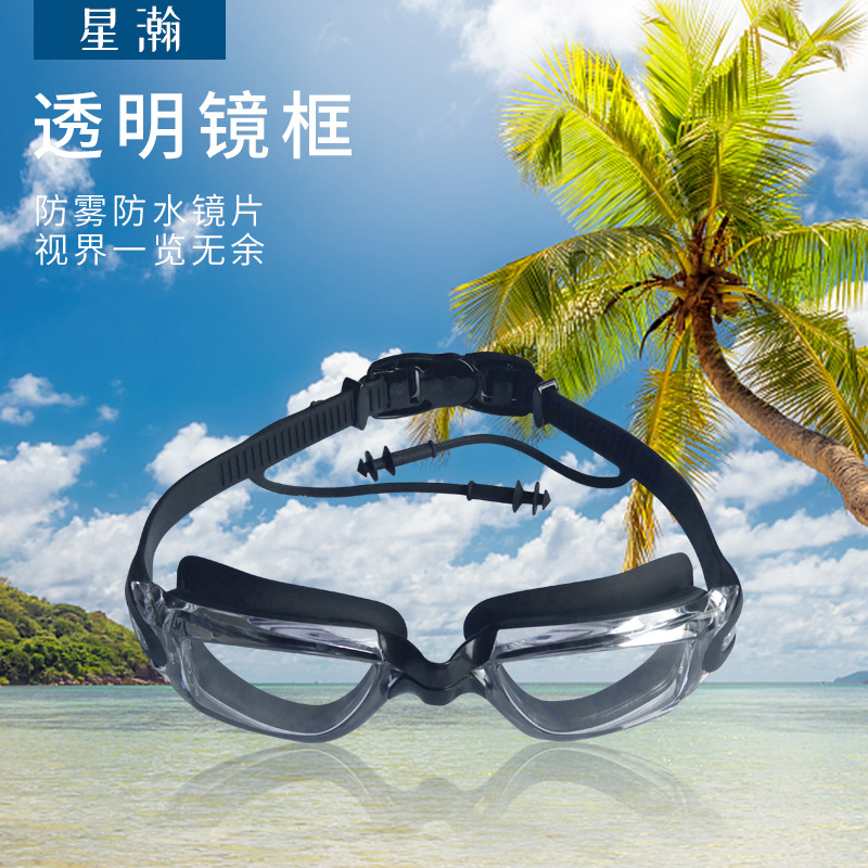 New conjoined silicone earplugs HD swimming goggles anti-fog waterproof men's and women's adult swimming glasses factory direct sales