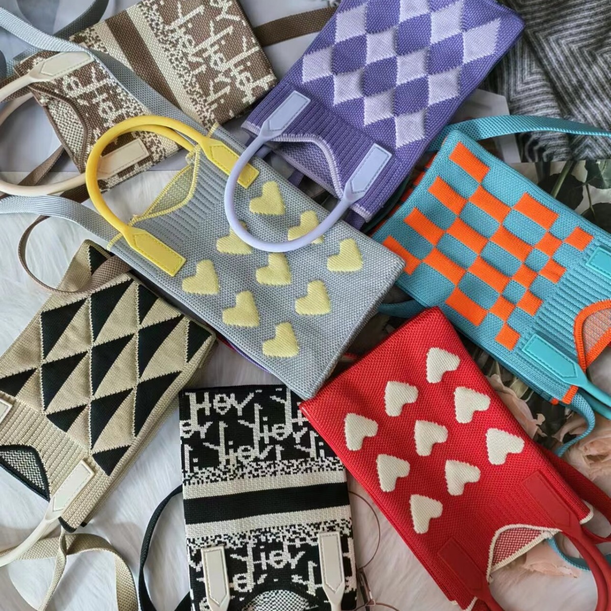 | nameOriginal | New Contrast Color Biscuits Fafa Knitted Mini Mobile Phone Bag Women's Niche Texure Student Casual Trendy Change Crossbody Bag |