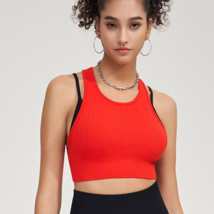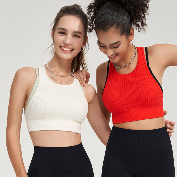 | nameOriginal | New contrast color seamless knitted yoga bra fake two pieces can be worn outside one-piece chest pad sports underwear vest for women |