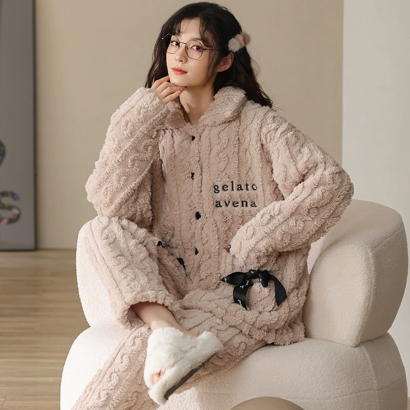 | nameOriginal | New Coral Fleece Pajamas for Women Autumn and Winter Thickened and Velvet Warm Postpartum Clothes Flannel Home Clothes Set Spring |