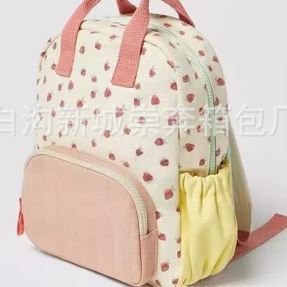 | nameOriginal | New Cotton Canvas Dopamine Strawberry Print Colorblock Cute Children Backpack Schoolbag |