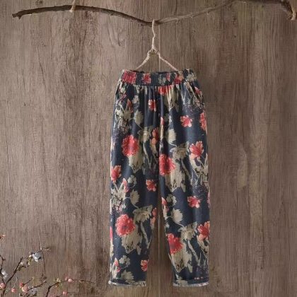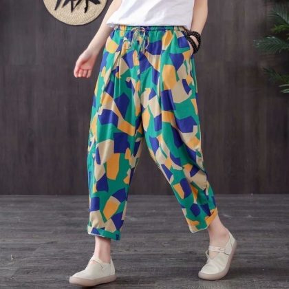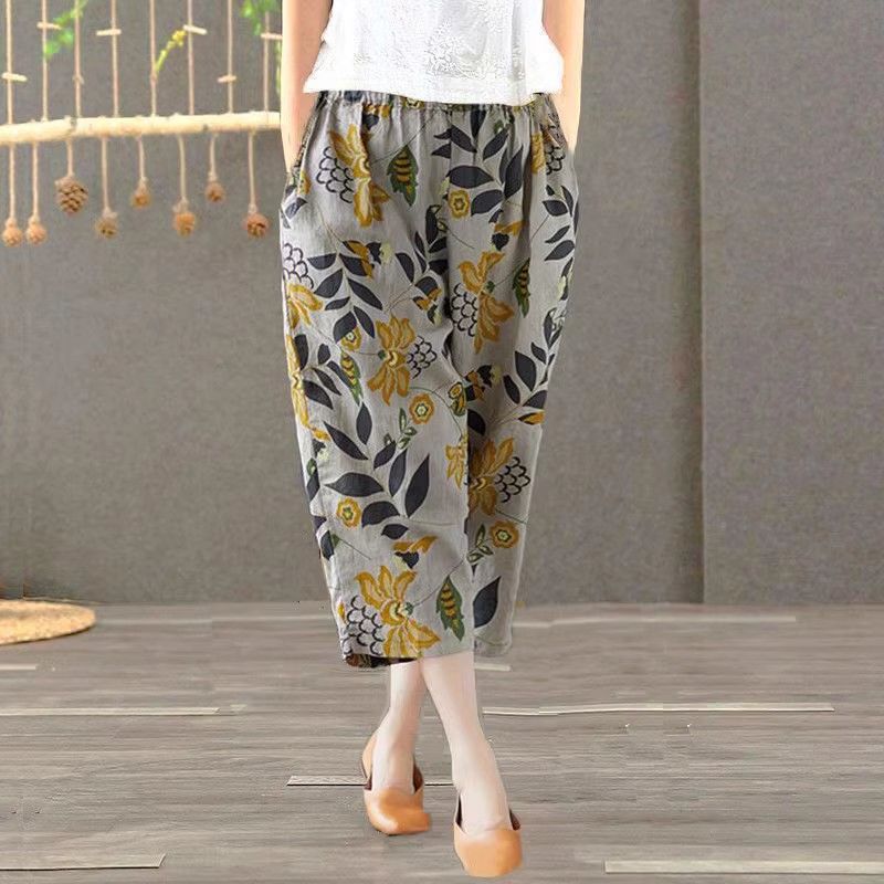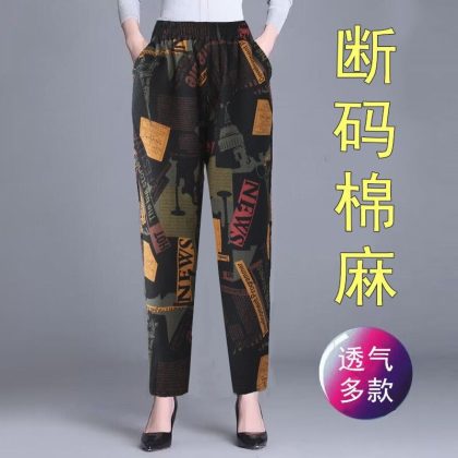 | nameOriginal | New Cotton Hallen Pants Summer Thin Slimming Printed Baggy Pants plus size Cotton and Linen Casual Pants Loose Mom Ankle-length Pants |