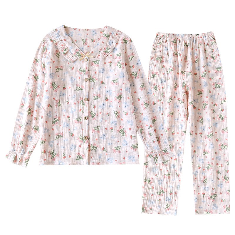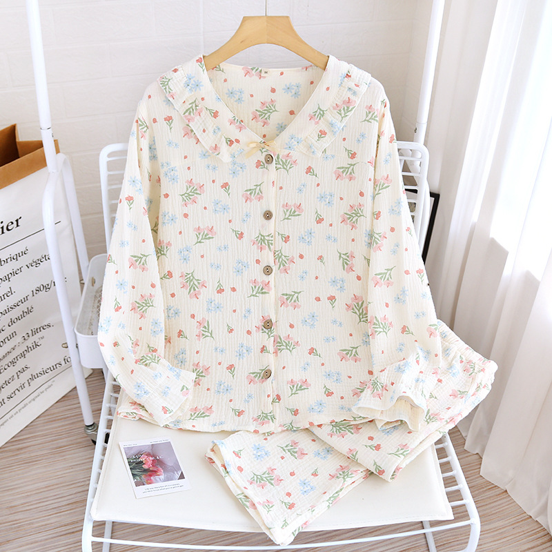 | nameOriginal | New Cotton Long-sleeved Trousers Women's Pajamas Cotton Yarn Suit Floral Breathable Spring and Summer Cotton Home Suit |