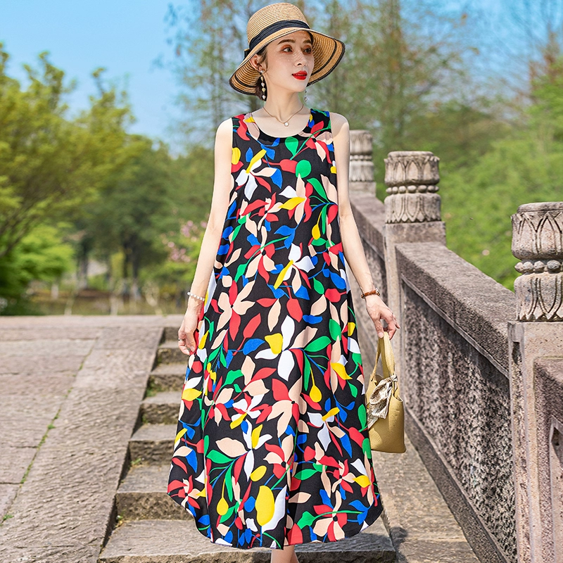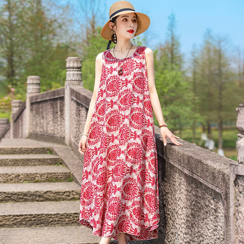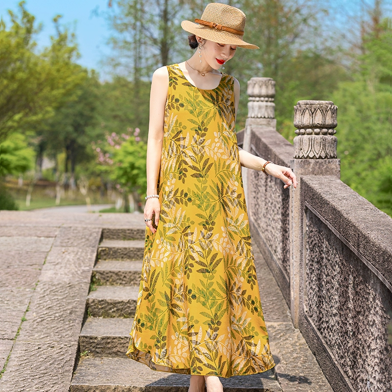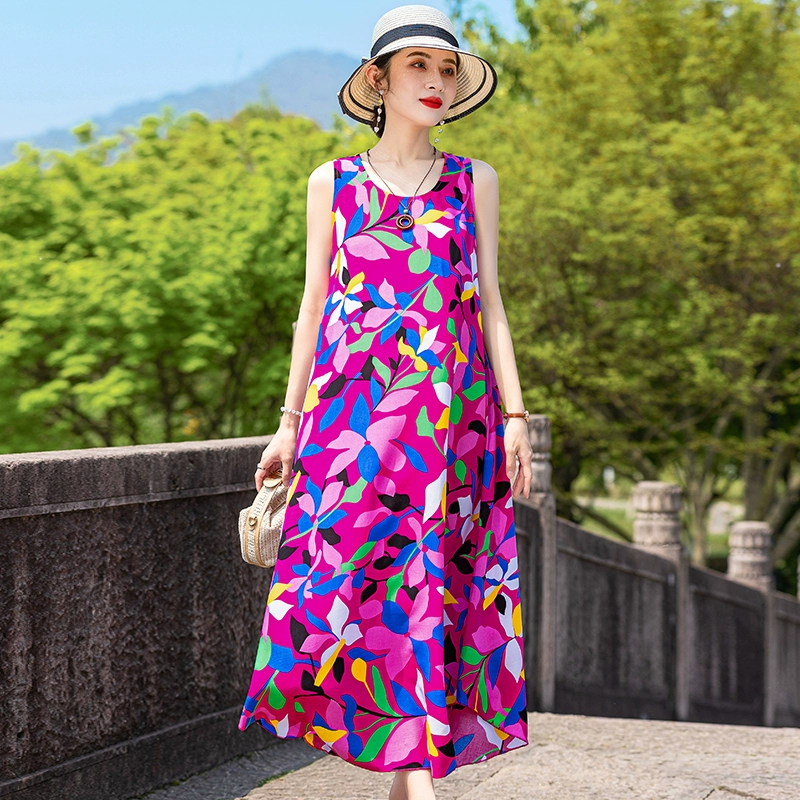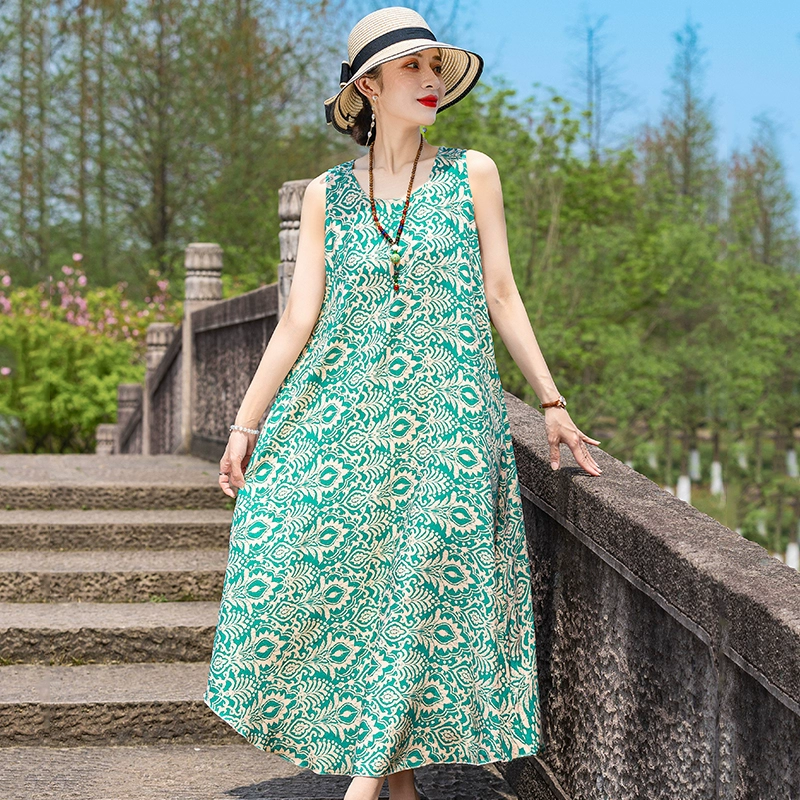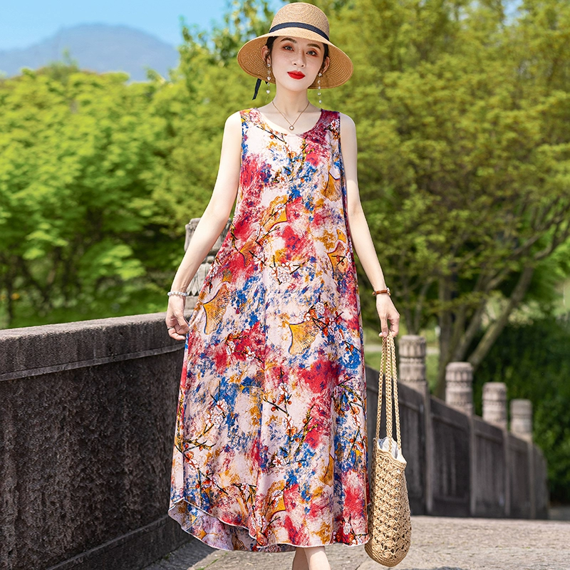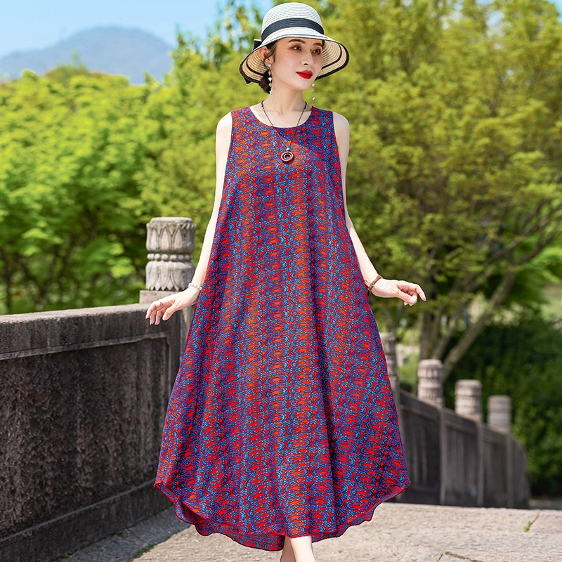 New cotton silk plus size outer wear dress for the elderly