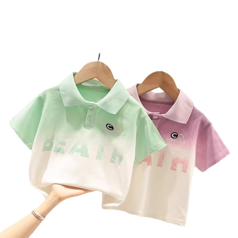 | nameOriginal | New Cotton Summer Handsome Men's and Women's Middle and Small Children's Baby T Gradient Tie-Dye Turned Collar Fashion Short-sleeved T-shirt Polo Shirt |