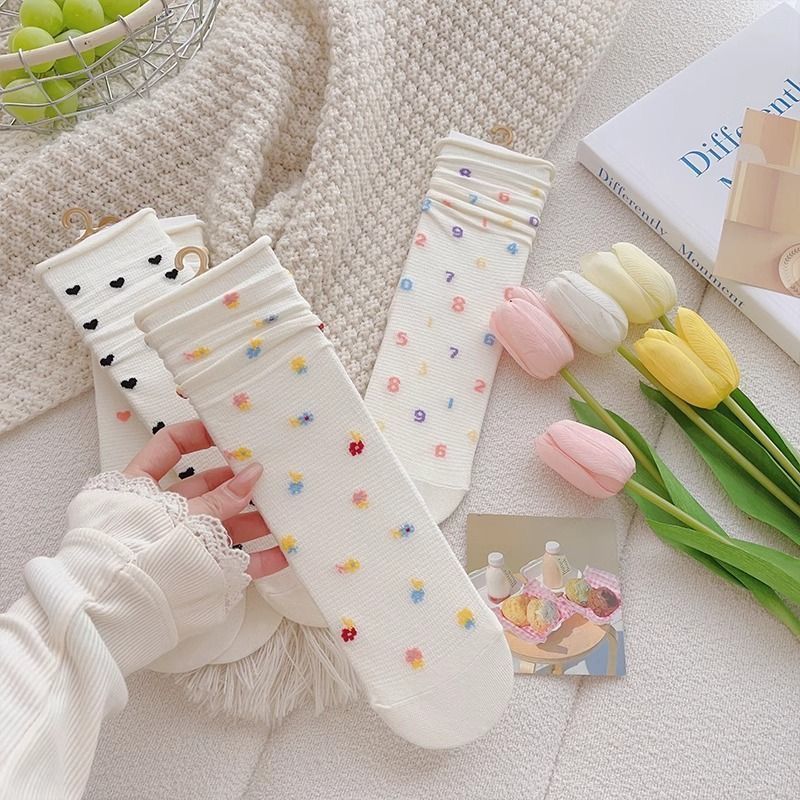 | nameOriginal | New Cream Style Socks Women's Summer Thin Stockings Ins Trendy Japanese Style Slim Curl Color Middle Tube Stacked Socks- |
