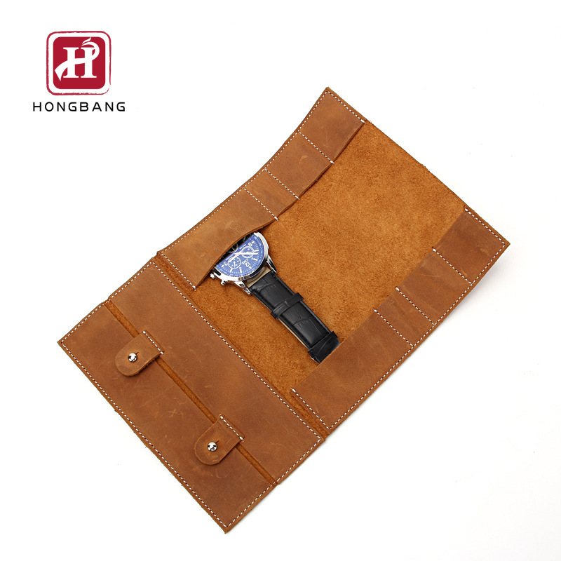 New creative retro Crazy Horse leather watch bag folding large capacity watch leather case factory custom wholesale