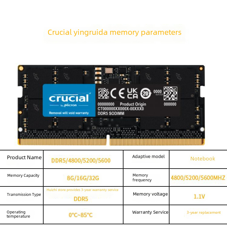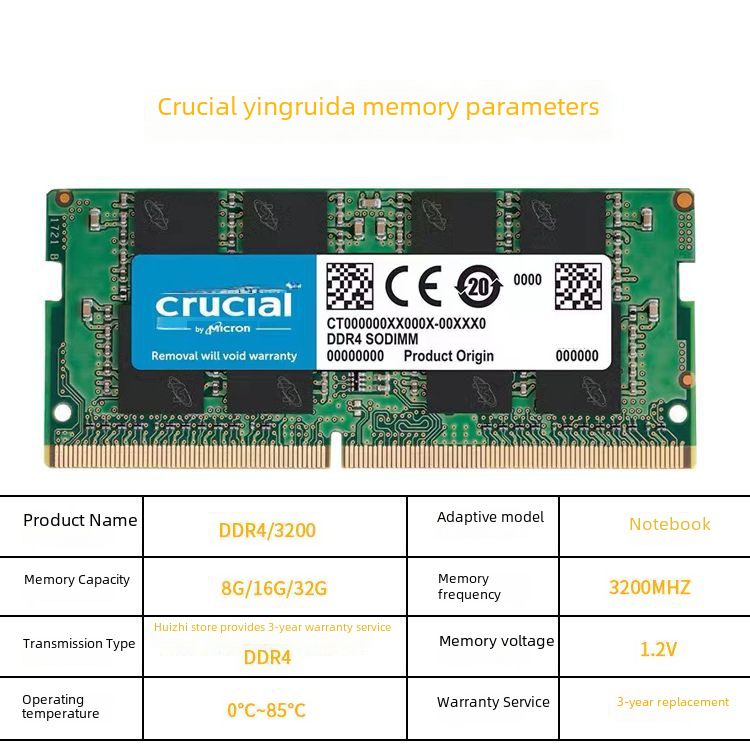 | nameOriginal | New critical Yingruida DDR4 Memory DDR5 Computer 8G 16G Notebook 3200 Megon 3-Year Replacement |