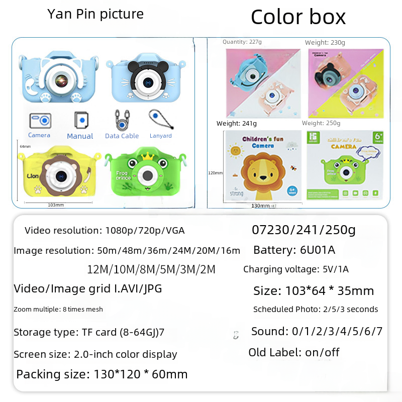 | nameOriginal | New cross-border 5s cat children's camera cartoon digital mini fun camera HD double camera toy gift one |