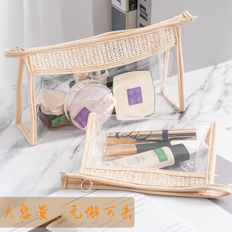 | nameOriginal | New cross-border Amazon ins straw transparent PVC cosmetic bag portable storage bag waterproof wash bag |