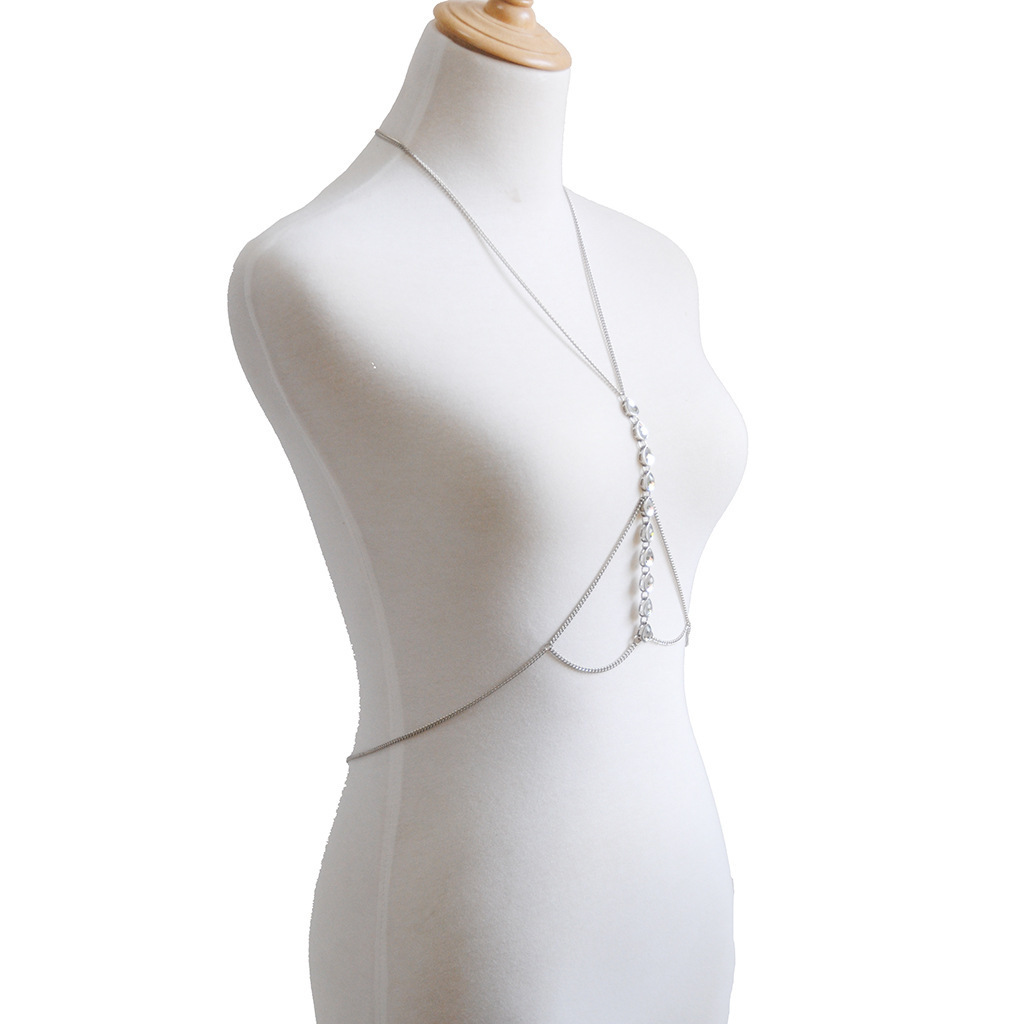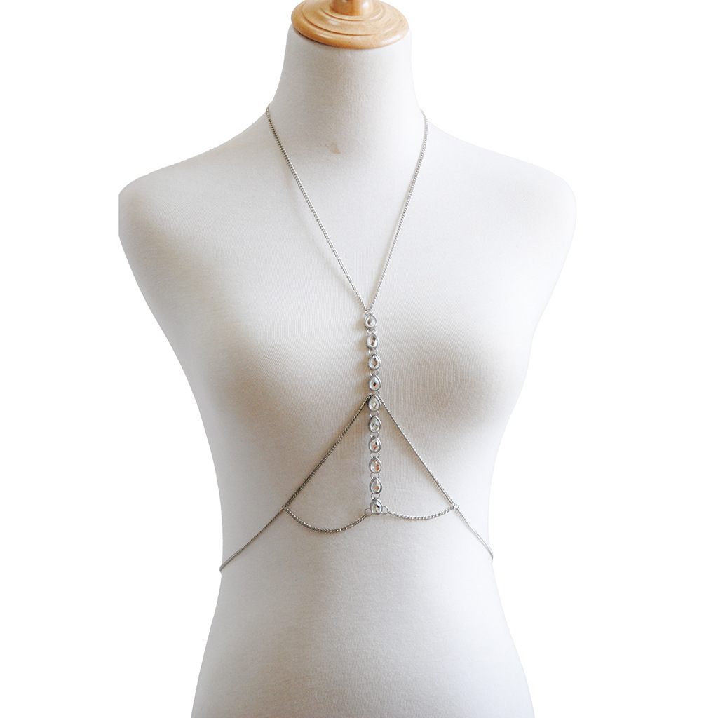 New cross-border European and American style jewelry necklace simple fashion Diamond Beach Party multi-layer chest chain body chain accessories