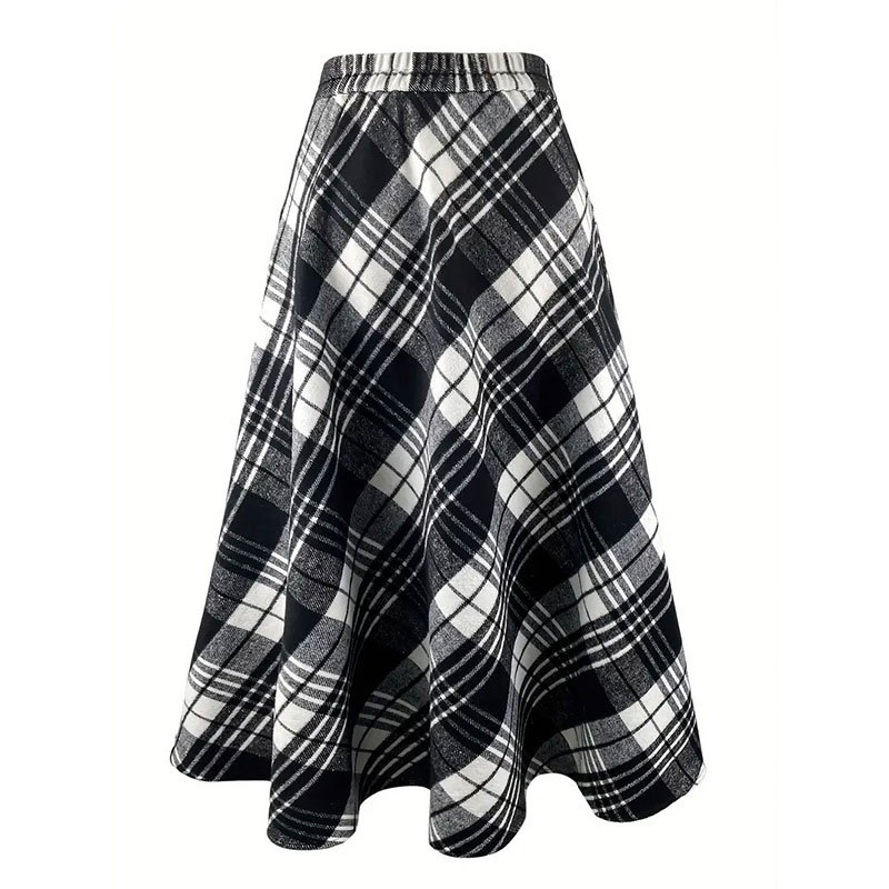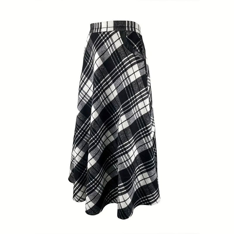 | nameOriginal | New cross-border European and American women's clothing black and white plaid woolen large pocket long umbrella skirt commuter skirt one-piece delivery |