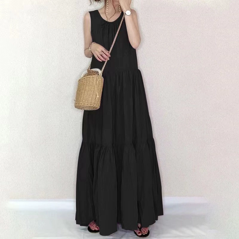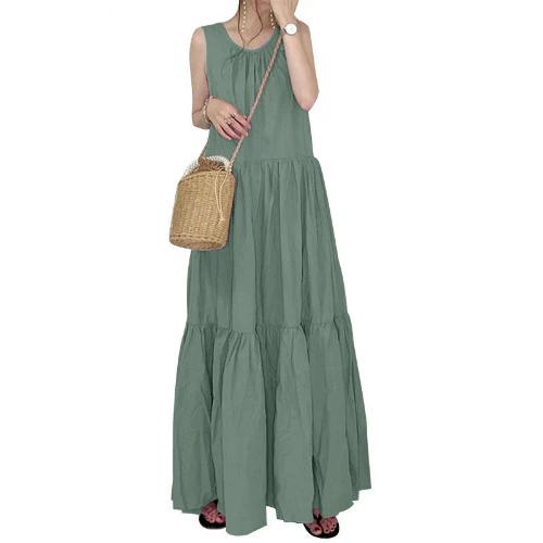 | nameOriginal | New cross-border holiday style knee-length long skirt dress Japanese sleeveless vest dress for women summer v-neck loose a-line cake skirt |