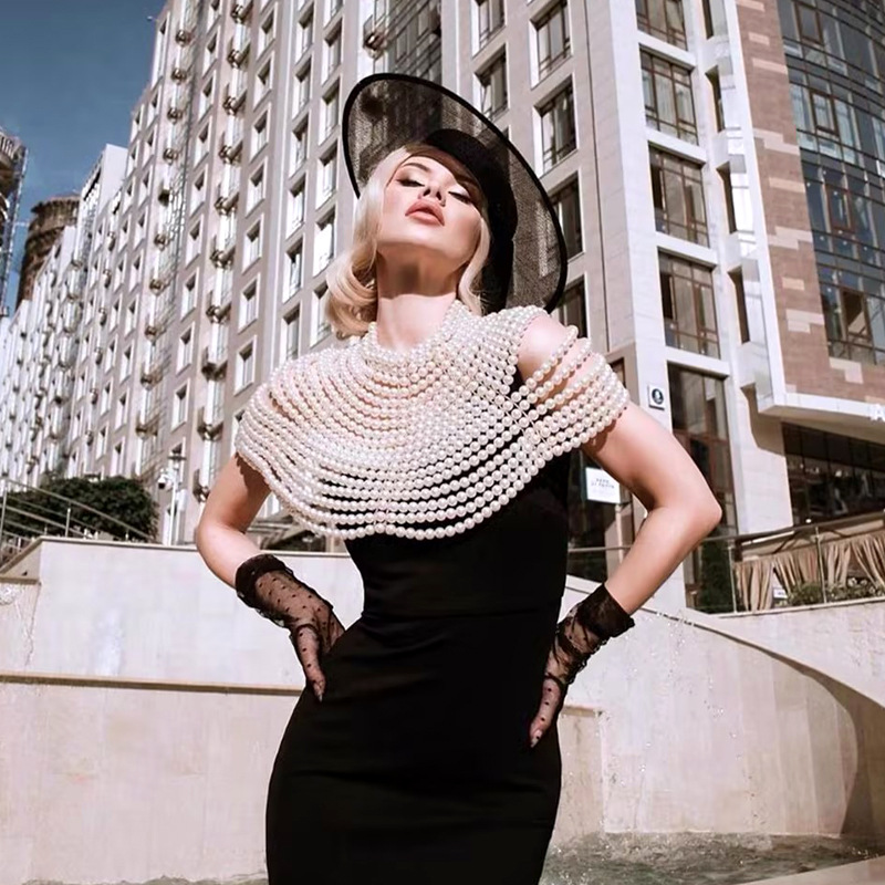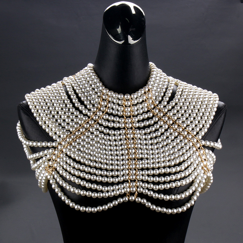 New cross-border hot selling pearl handmade shoulder chain European and American popular necklace strength chain multi-layer back chain