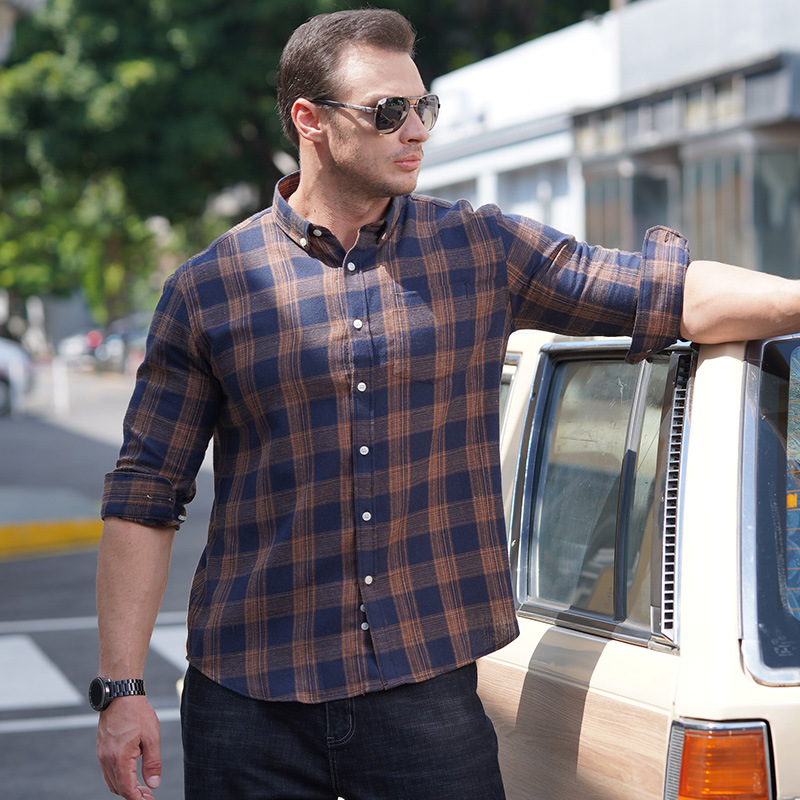 | nameOriginal | New cross-border Men's plus size casual daily business fashion loose long sleeve plaid shirt Spring and Autumn plus size |