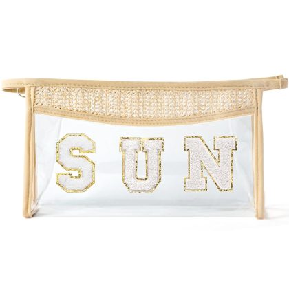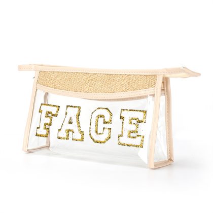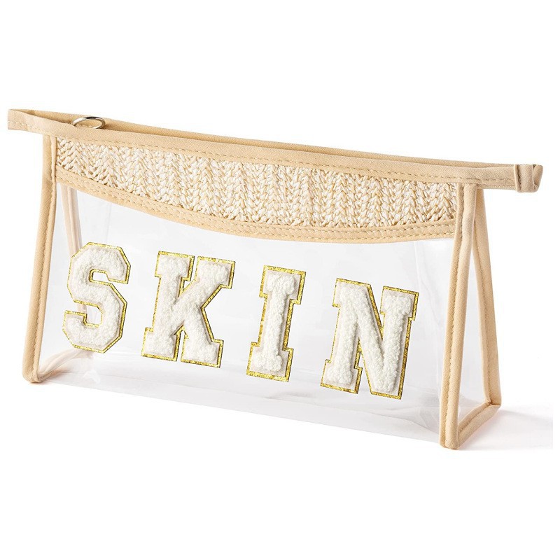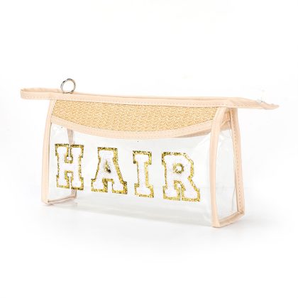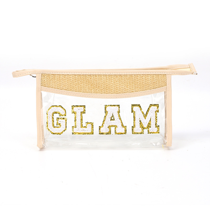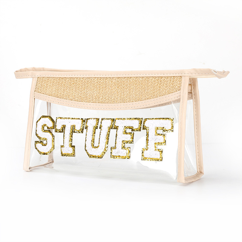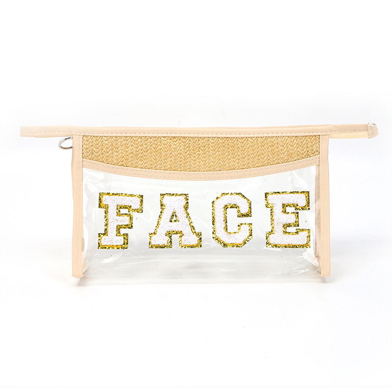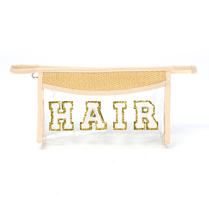 New cross-border pvc straw stitching chenille letter transparent cosmetic bag large capacity waterproof portable storage bag