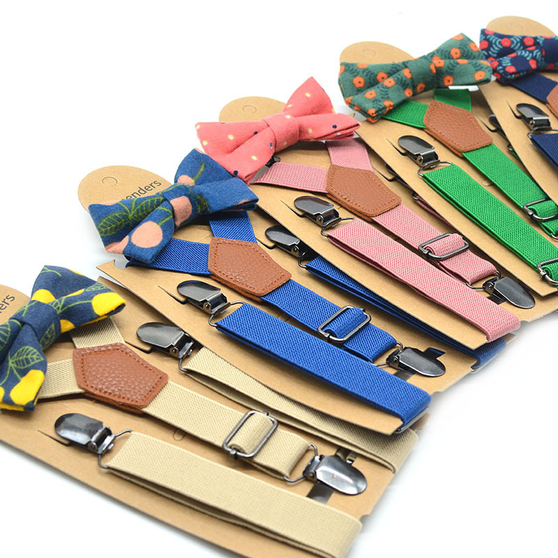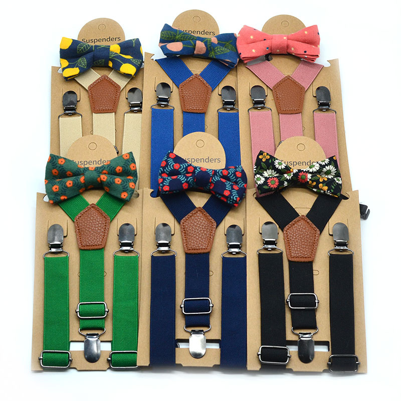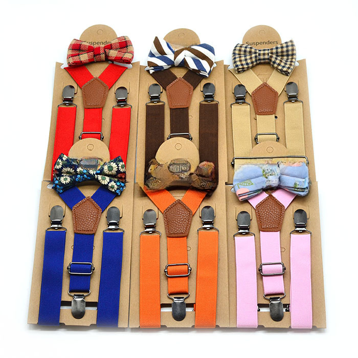 | nameOriginal | New cross-border Source children's solid color strap clip bow tie set elastic elastic strap 4 clip hanging pants clip |