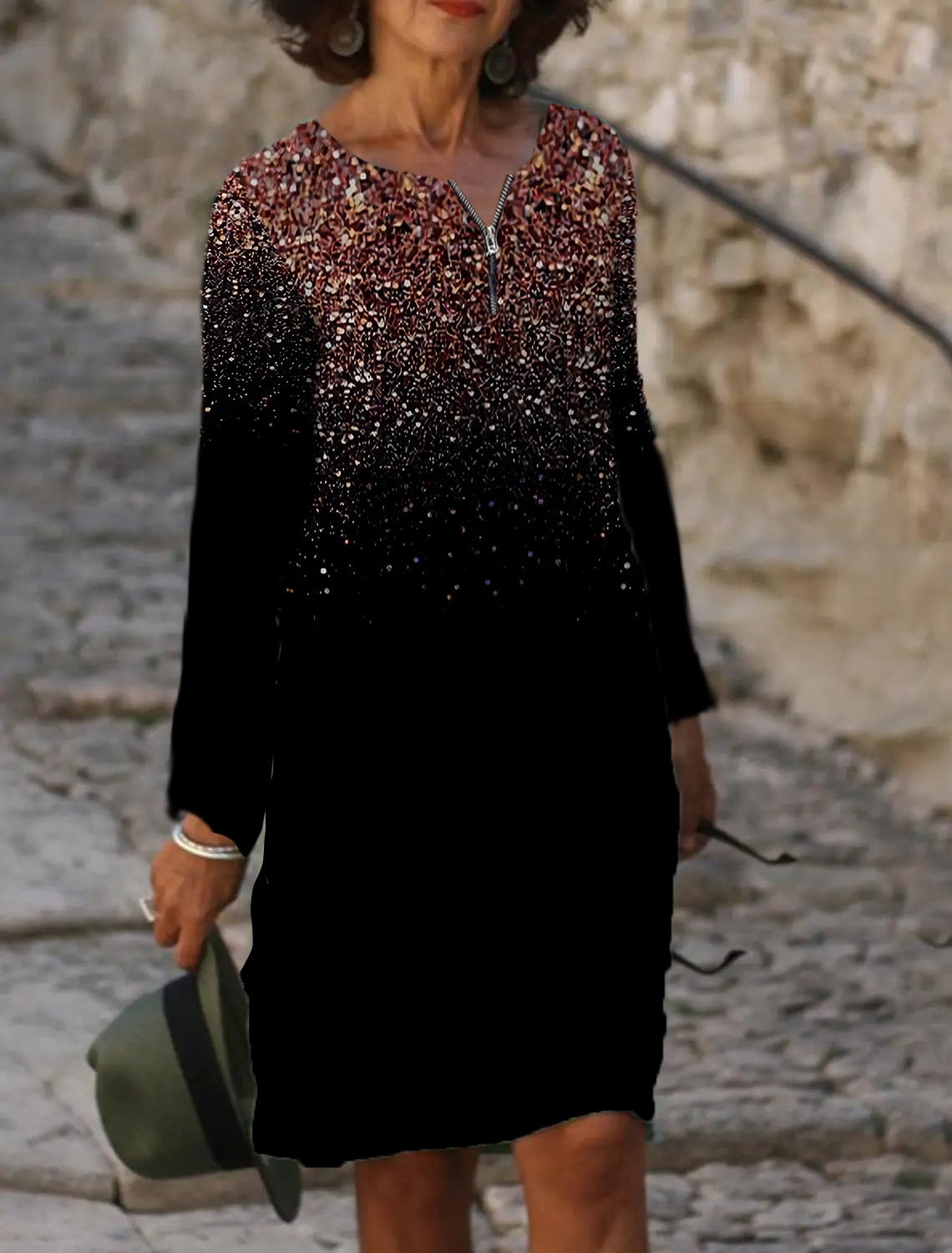New cross-border Spring and Autumn zipper round neck long sleeve dress 3D digital printing European and American women's clothing