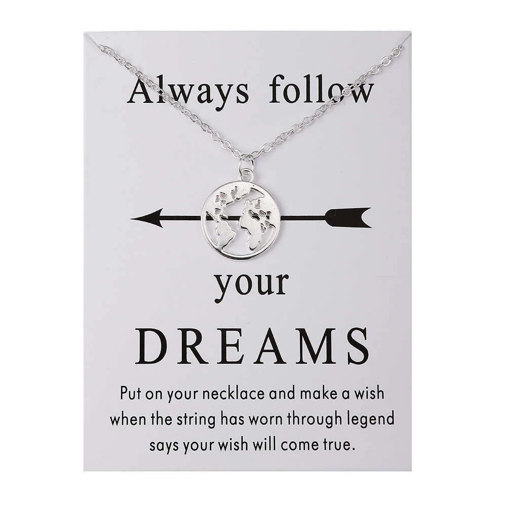 New cross-border supply Map Arrow dream card pendant necklace jewelry wholesale