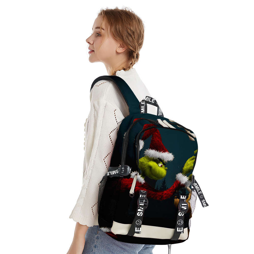 | nameOriginal | New cross-border wholesale green fur monster Grinch 3D color printing travel travel European and American ins backpack |