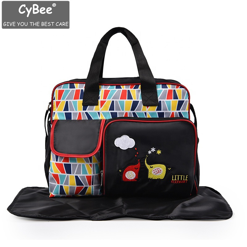 New Cute Baby Elephant Embroidered Hand Shoulder Mummy Bag Large Capacity Practical Diaper Bag Outgoing Portable Mother Bag