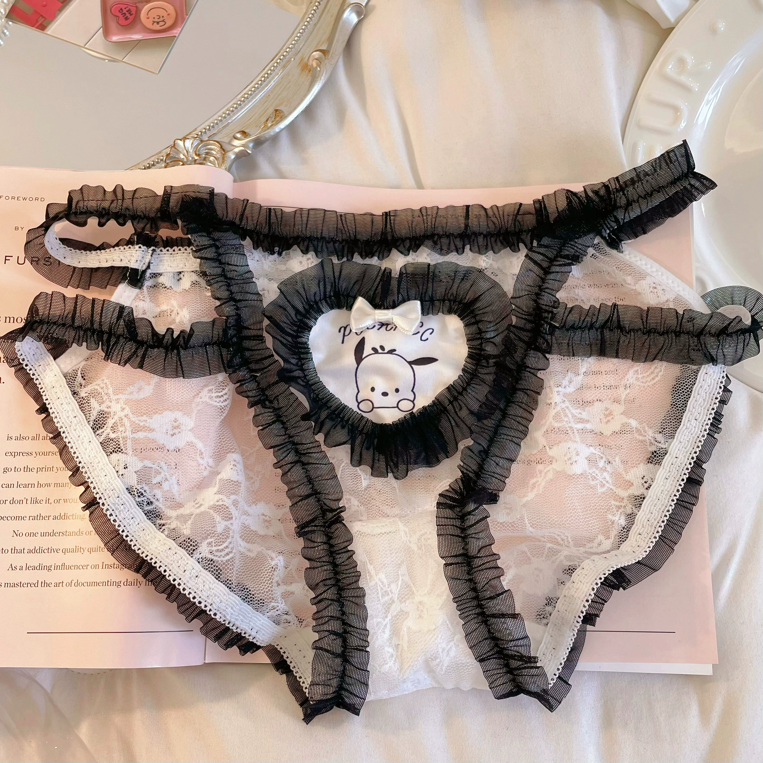 New cute inner crotch pure cotton dog series black and white milk lace lace sexy comfortable underwear for women