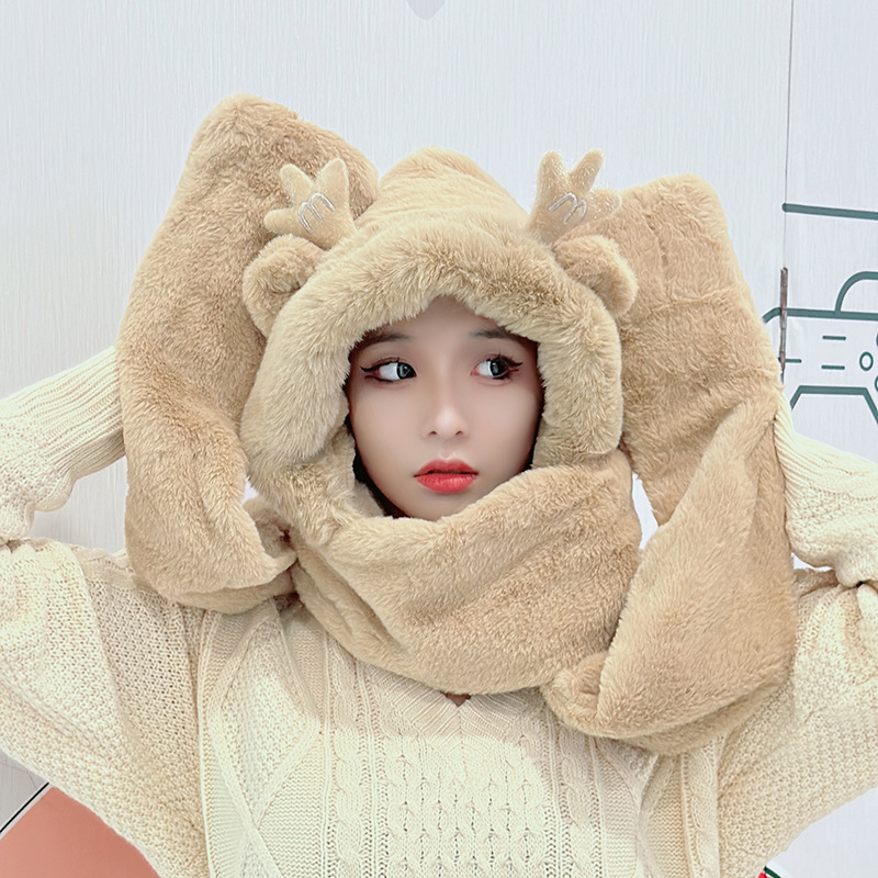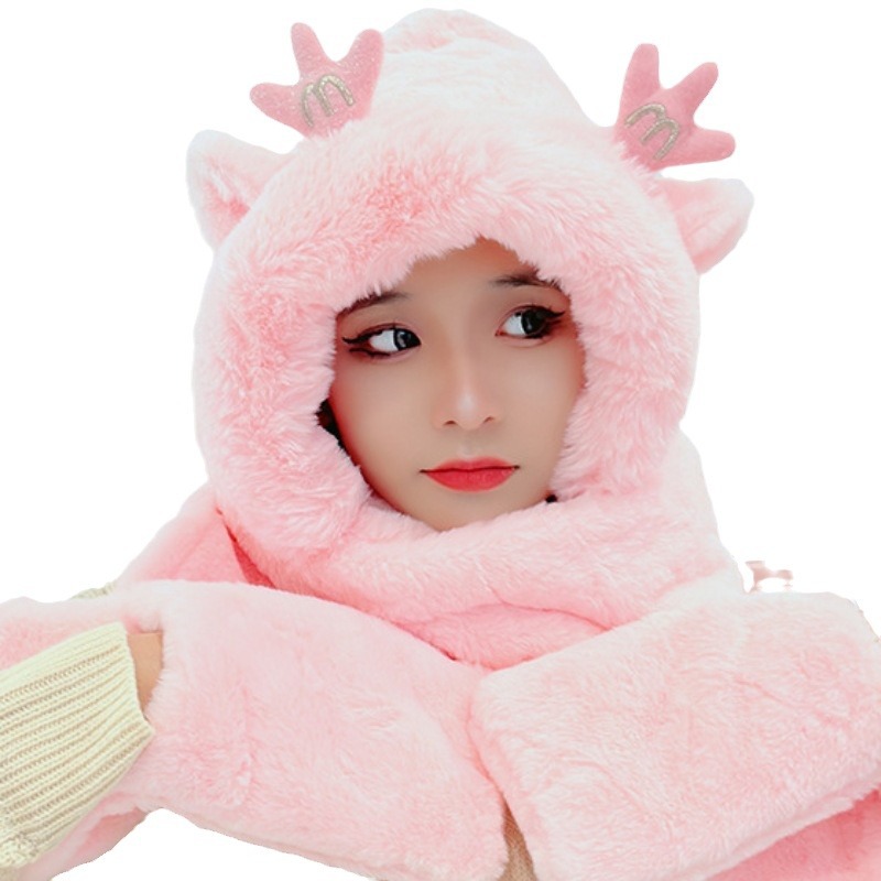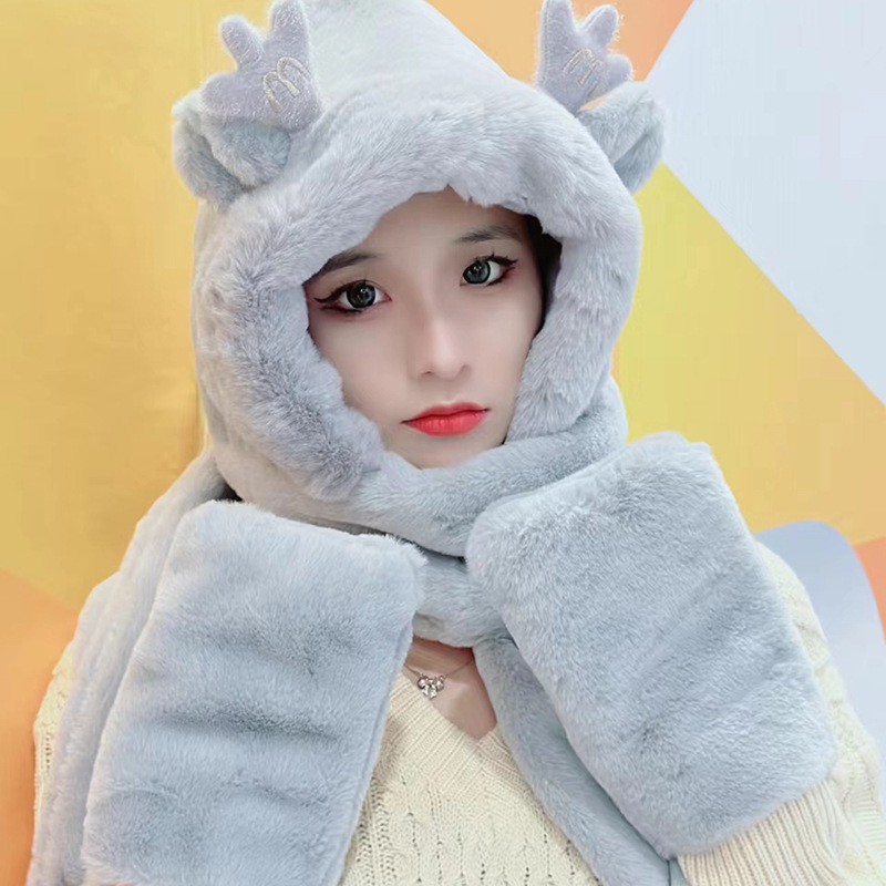 | nameOriginal | New Deer Horns Cap Women's Autumn and Winter Scarf Gloves One-piece Hooded Scarf Cute All-match Thickened Warm Three-piece Set |