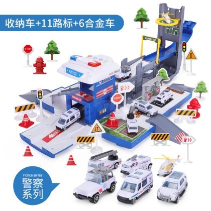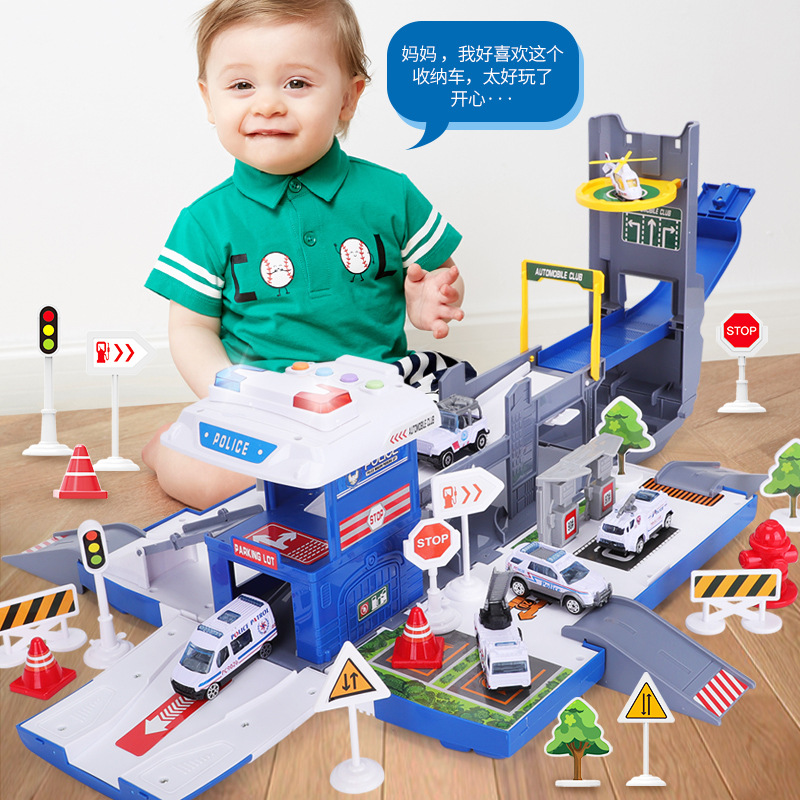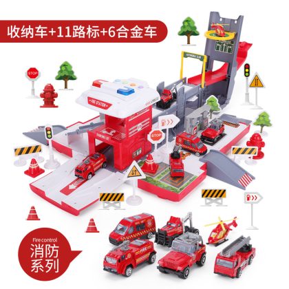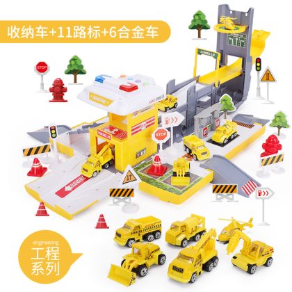 New deformable container truck parking lot track toy set with alloy car large engineering car puzzle model