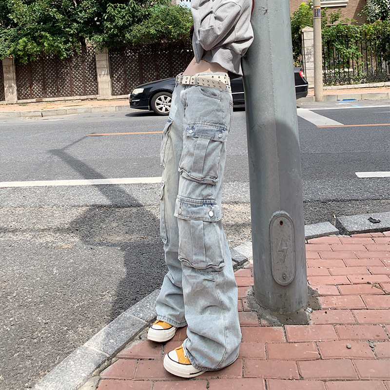 | nameOriginal | New Denim Blue Cushion Jeans All-match Wide-leg Multi-pocket Cushion Pants Washed Vintage Straight Trendy Brand Comfortable |