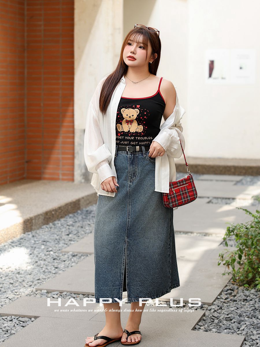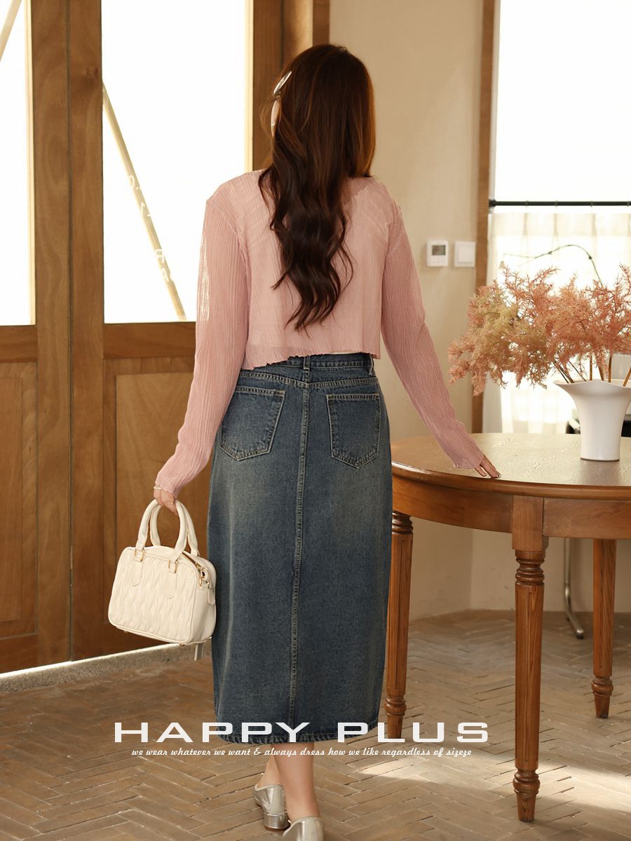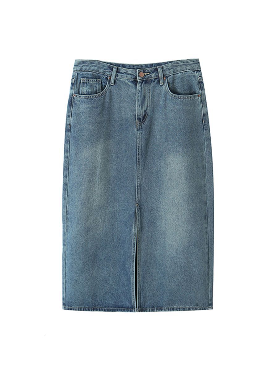 New Denim Straight Loose Long Skirt Moisturizing 8893 plus size Women’s Design Split Denim Skirt