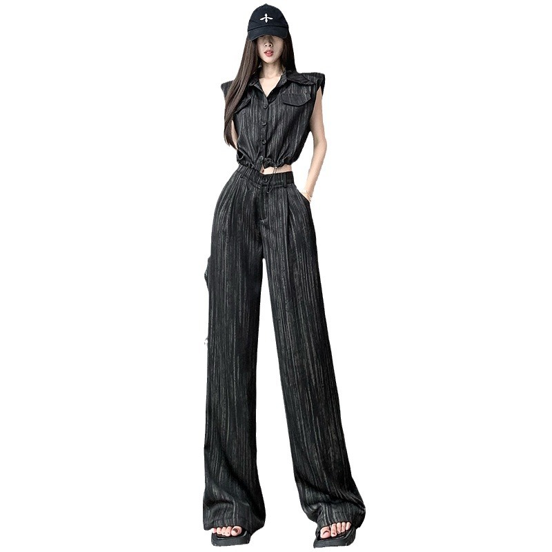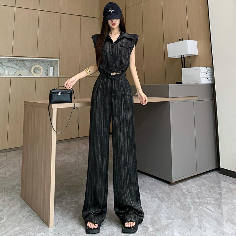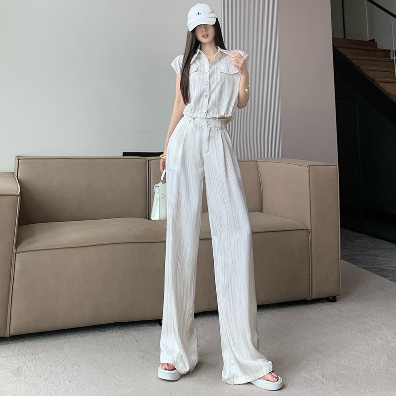 New Design Sense Sleeveless Shirt 2024 Summer High Waist Straight Wide Leg Pants Two-piece Set Korean Style Elegant Slimming