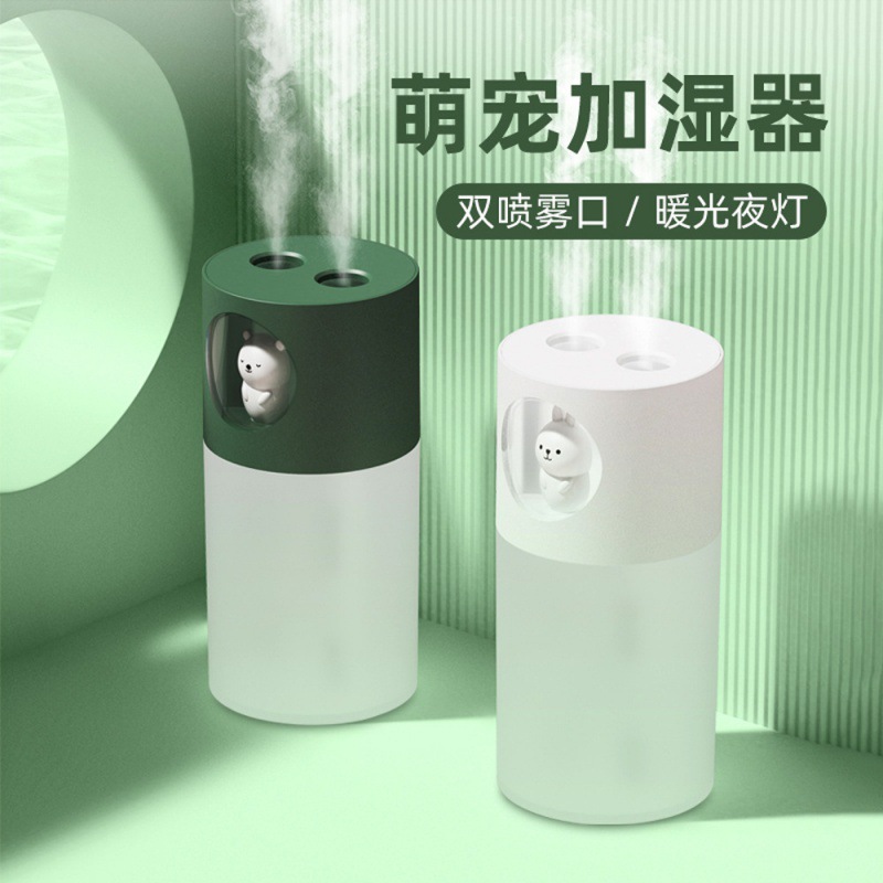 New desktop car double nozzle cute pet humidifier creative cartoon night light USB mute air purifier