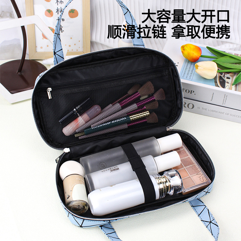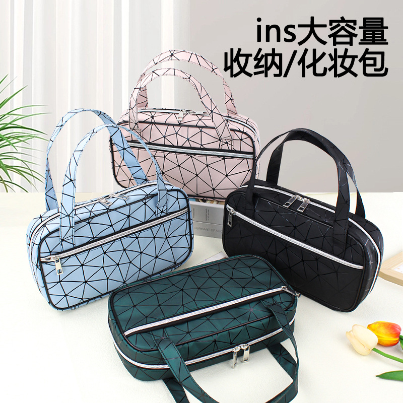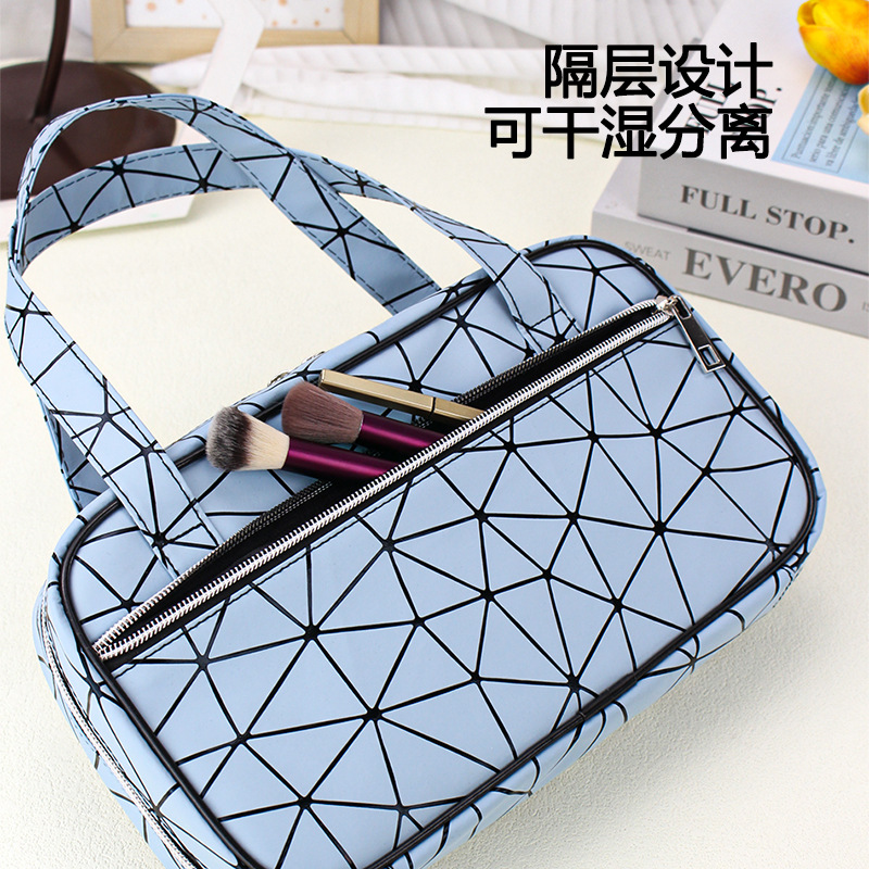 New Diamond large capacity portable cosmetic bag high-looking PU leather wash bag women's multi-functional storage bag