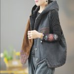 New Distressed Distinctive Color Blanket Padded Cotton Denim Vest Top Women’s Outer Wearing Hooded Vest