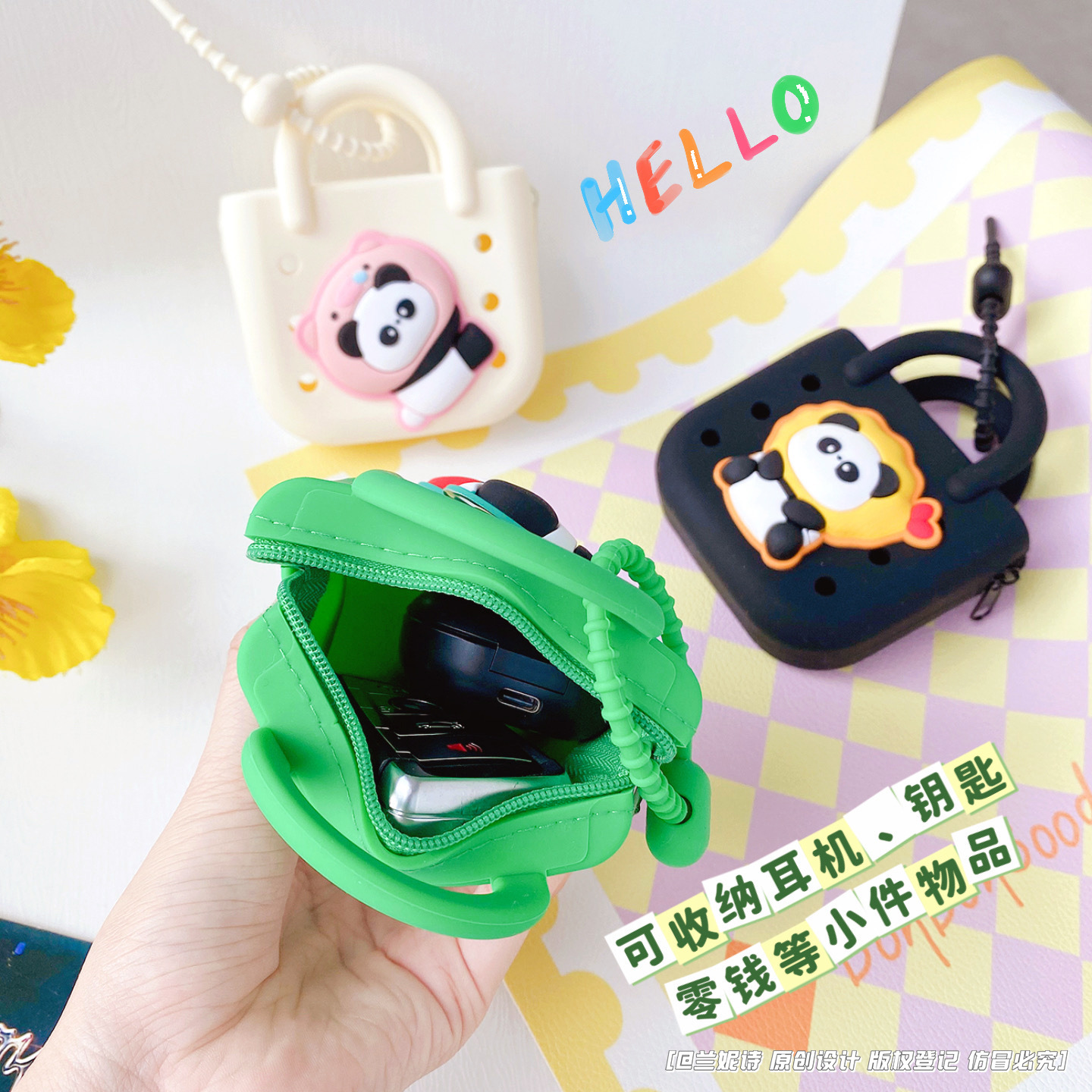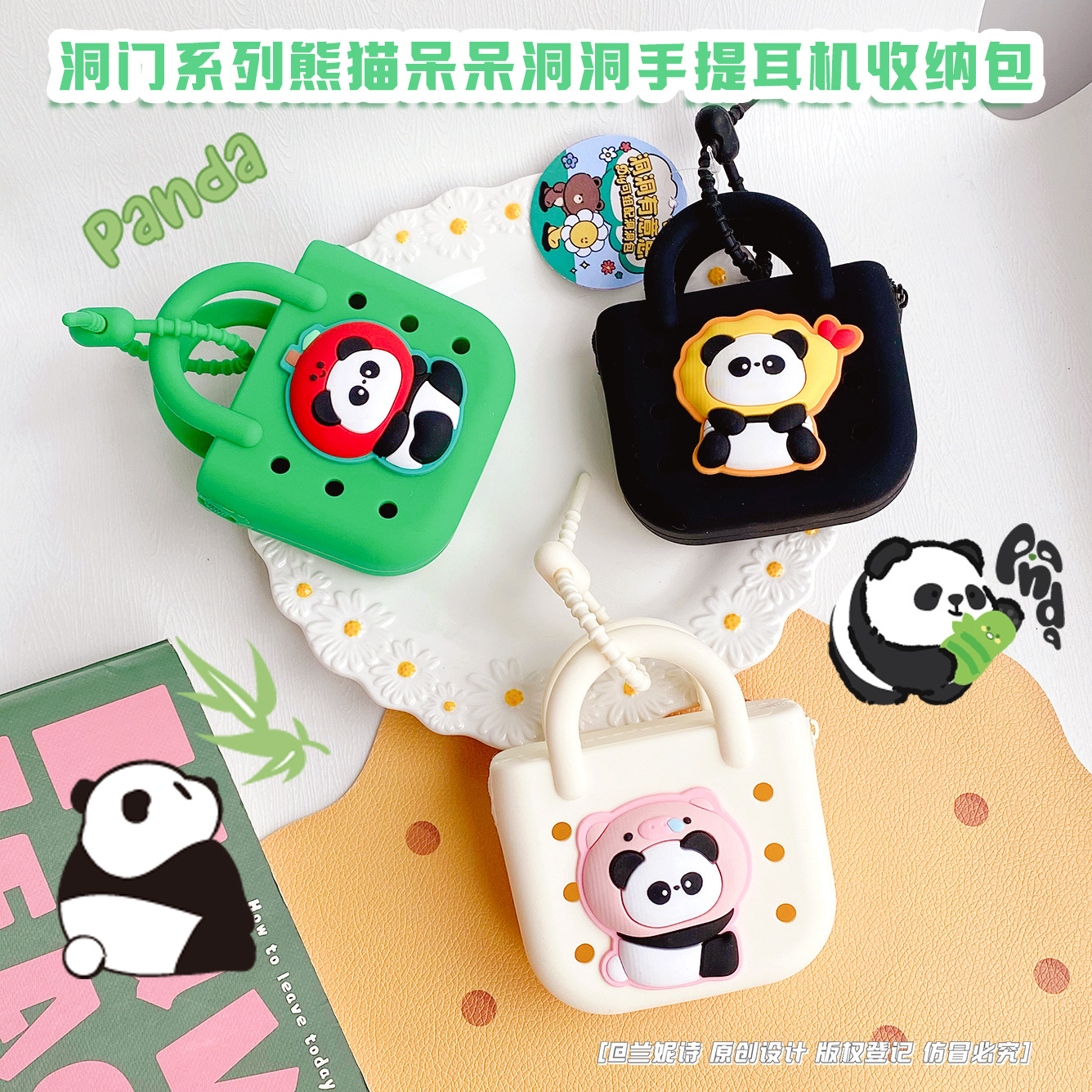 New DIY Panda Dumb Cave Portable Headset Storage Bag Cute Fun Personality Silicone Coin Purse Gift Supply