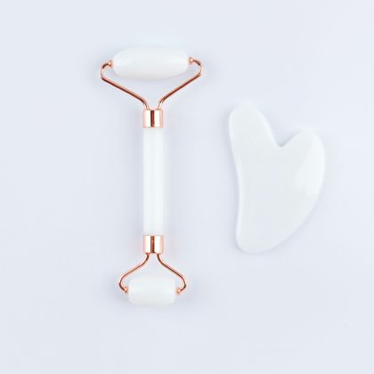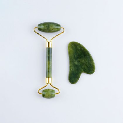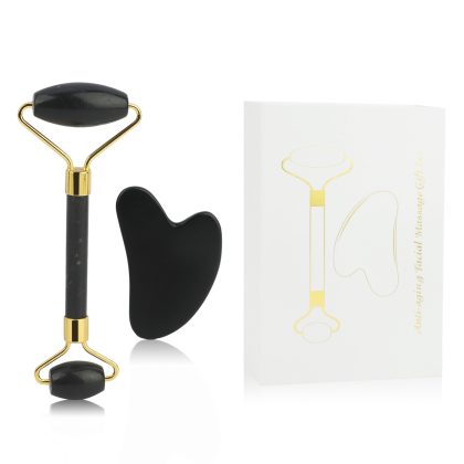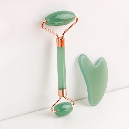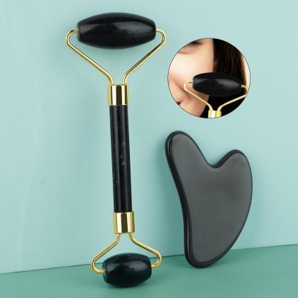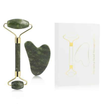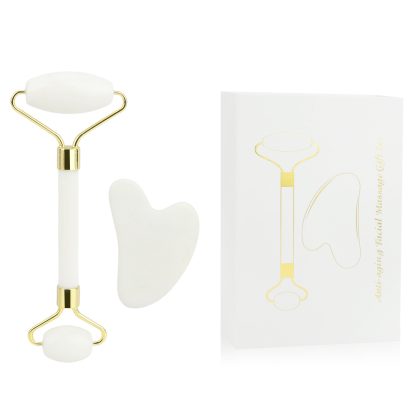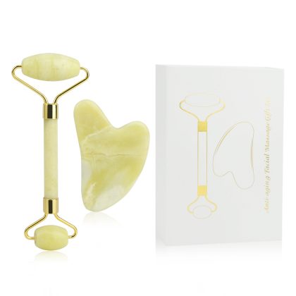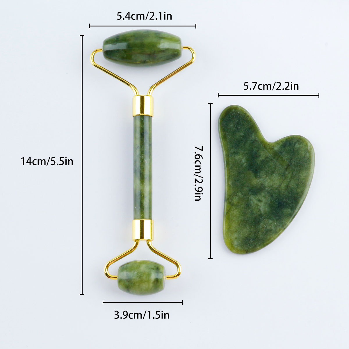 New double-headed jade roller scraping massager physiotherapy scraping plate facial massage stick thickened beauty container cross-border