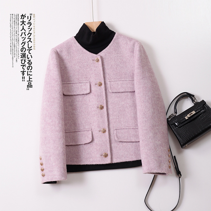 | nameOriginal | New double-sided cashmere coat small wool round neck Chanel style women's spring and autumn short woolen coat |