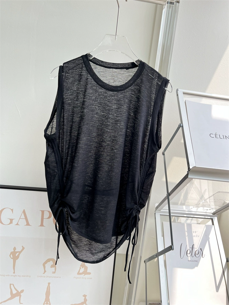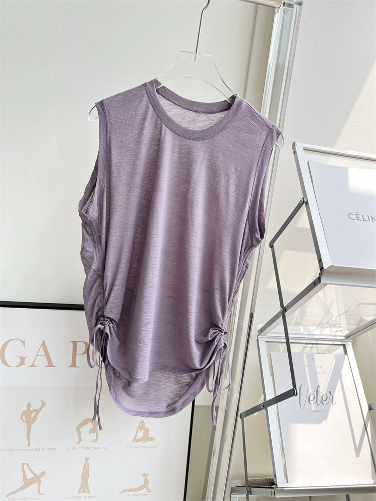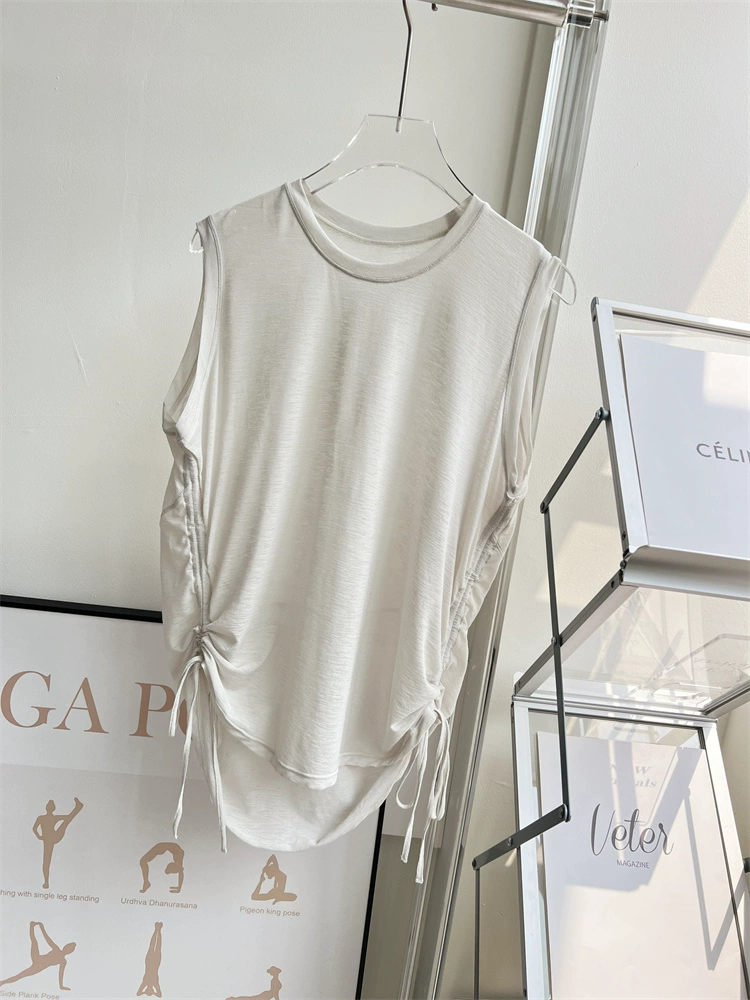 | nameOriginal | New drawstring see-through slimming yoga vest for women to cover flesh running fitness sleeveless blouse top thin summer |