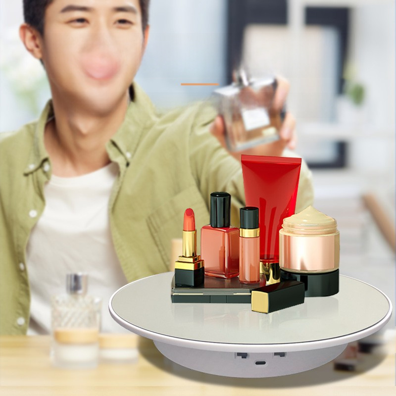 New electric turntable 32cm battery USB power supply photography live broadcast turntable jewelry rack rotating display table