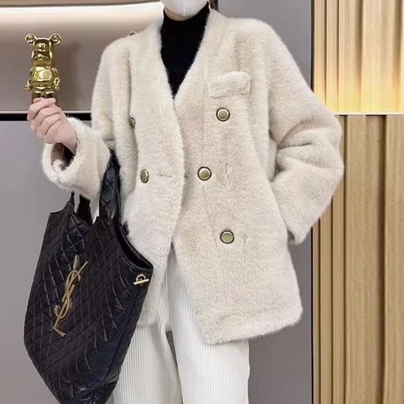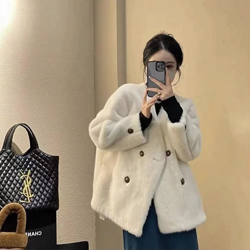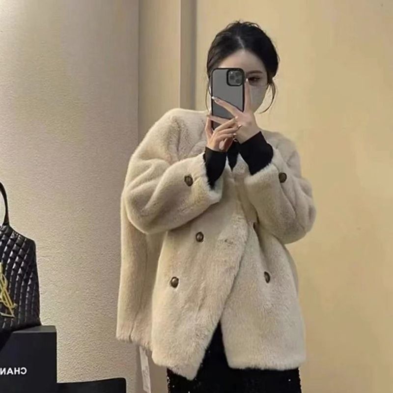 New elegant short collar fur integrated fashion mink fur coat for women thickened warm