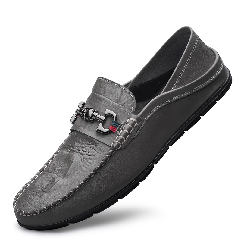 New Embossed Crocodile Pea Shoes Cross-border plus size Round-toe Driving Shoes Casual Shoes Cowhide Dual-purpose Lazy Men's Shoes