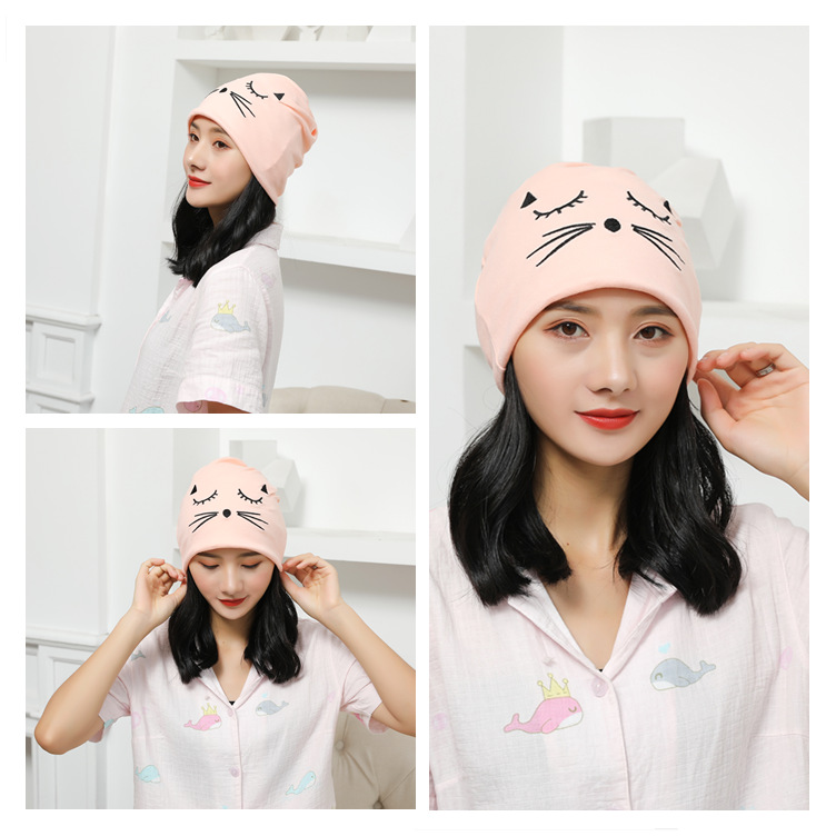 | nameOriginal | New embroidered cat pile hat combed brushed cotton four seasons maternity hat hair band factory direct sales |