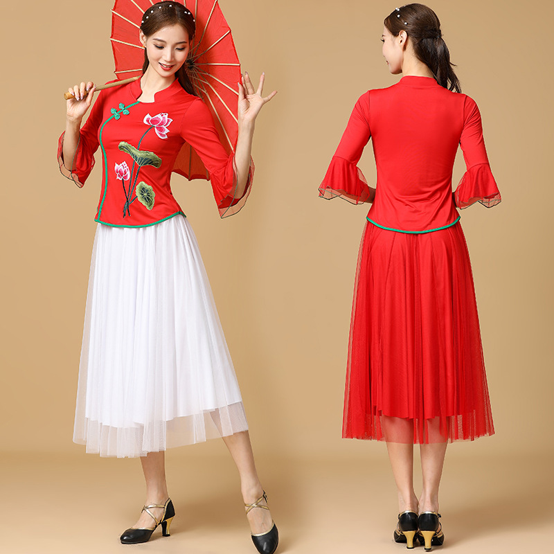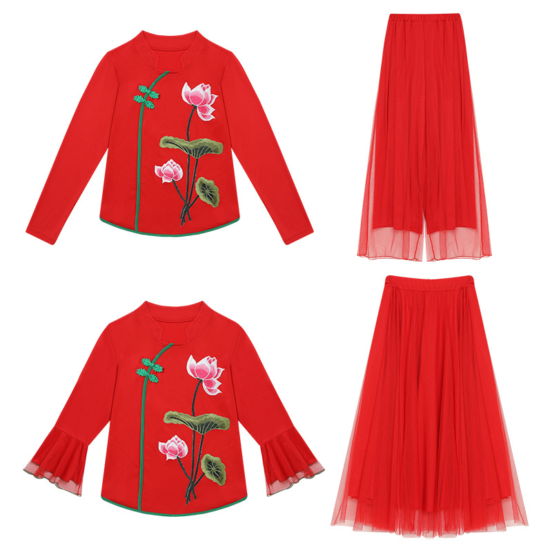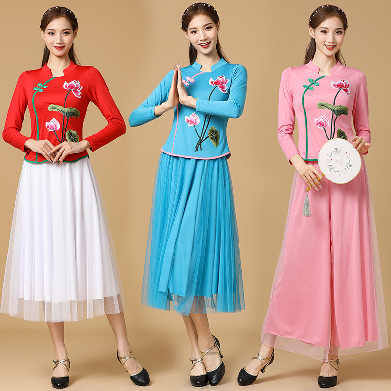New Embroidered Female Ethnic Style Classical Dance Dancing Square Dance Performance Suit Chinese Style Performance Suit Top Set