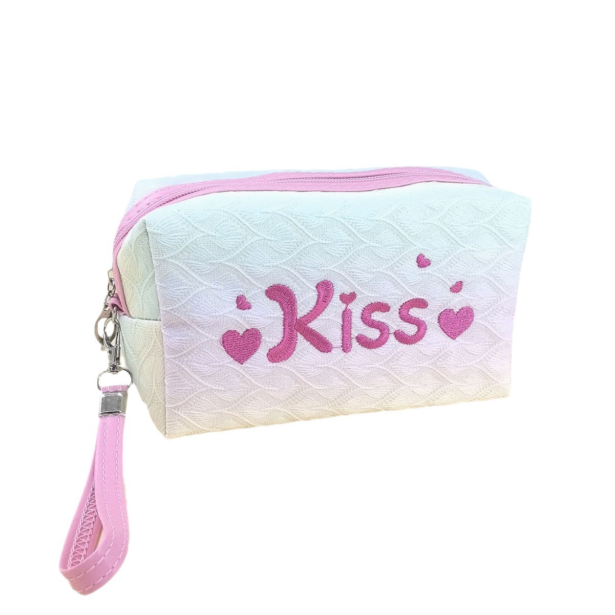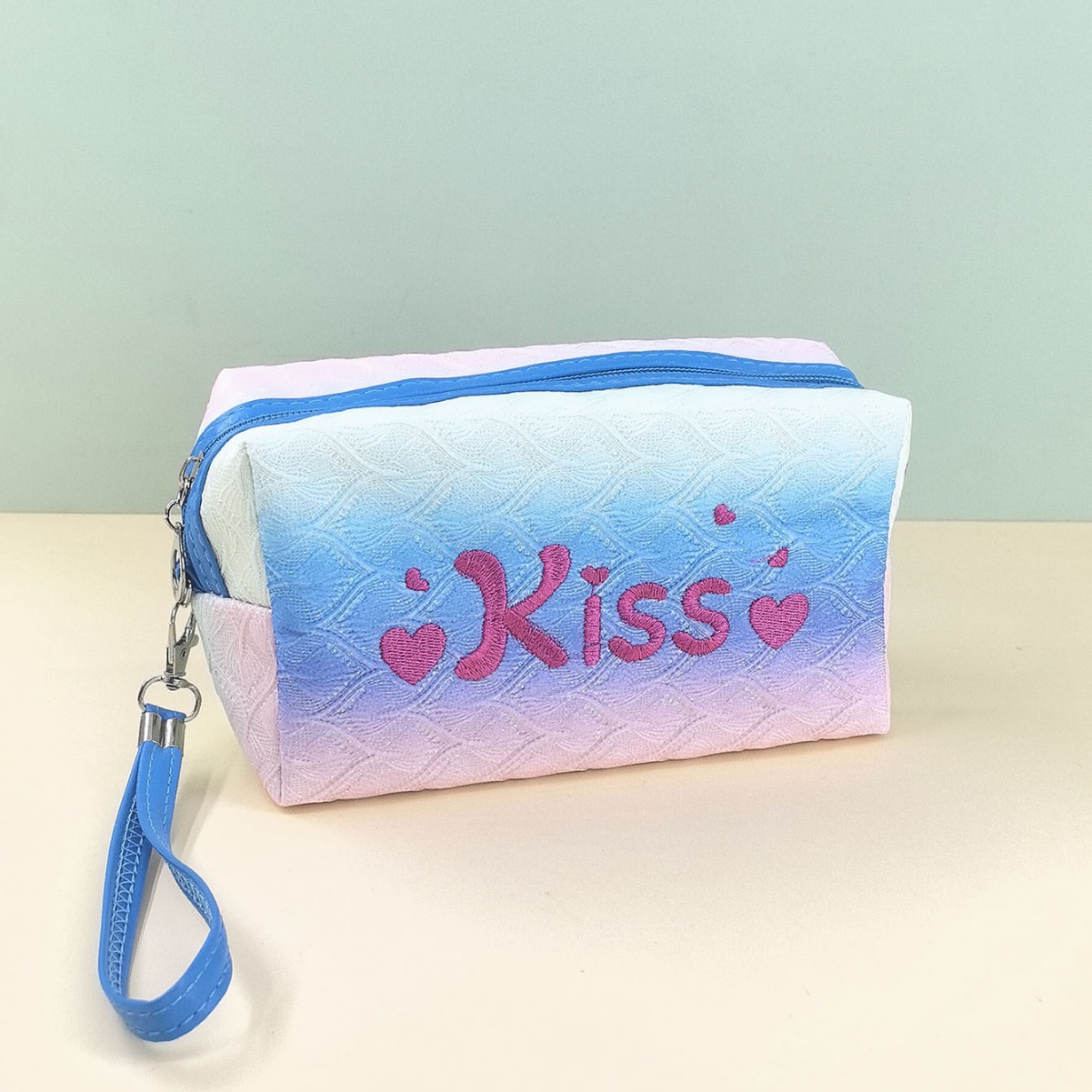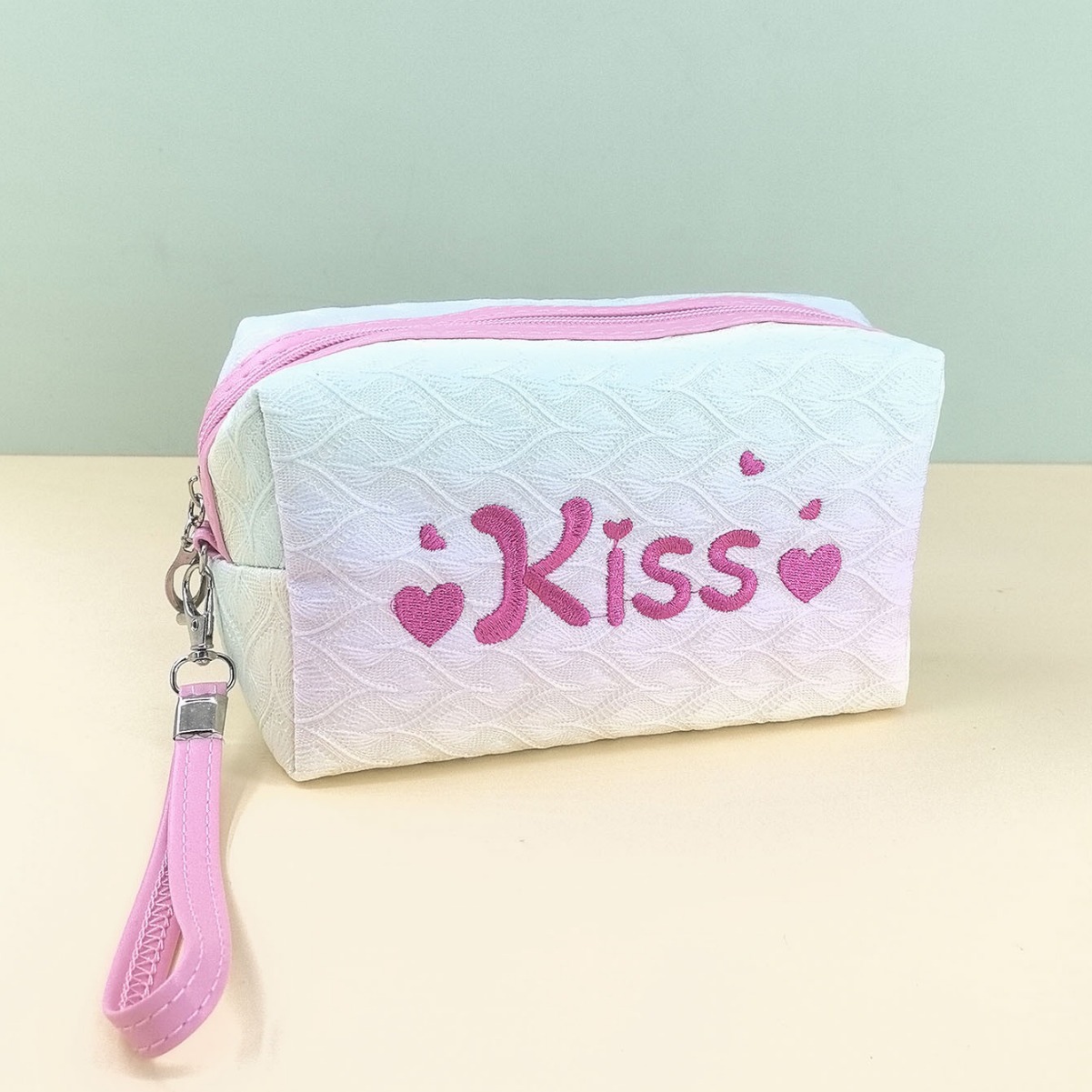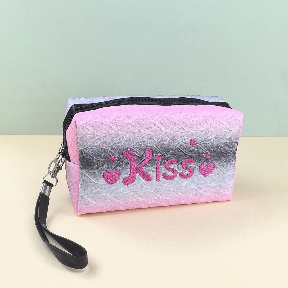 | nameOriginal | New embroidery kiss large capacity ins style cosmetic bag gradient contrast color portable storage bag wash bag wholesale |