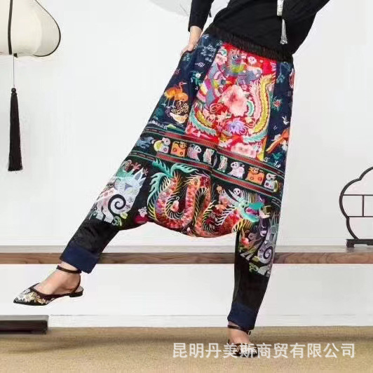 New ethnic style embroidered pants women's retro National style embroidered crotch pants fashionable personalized leggings