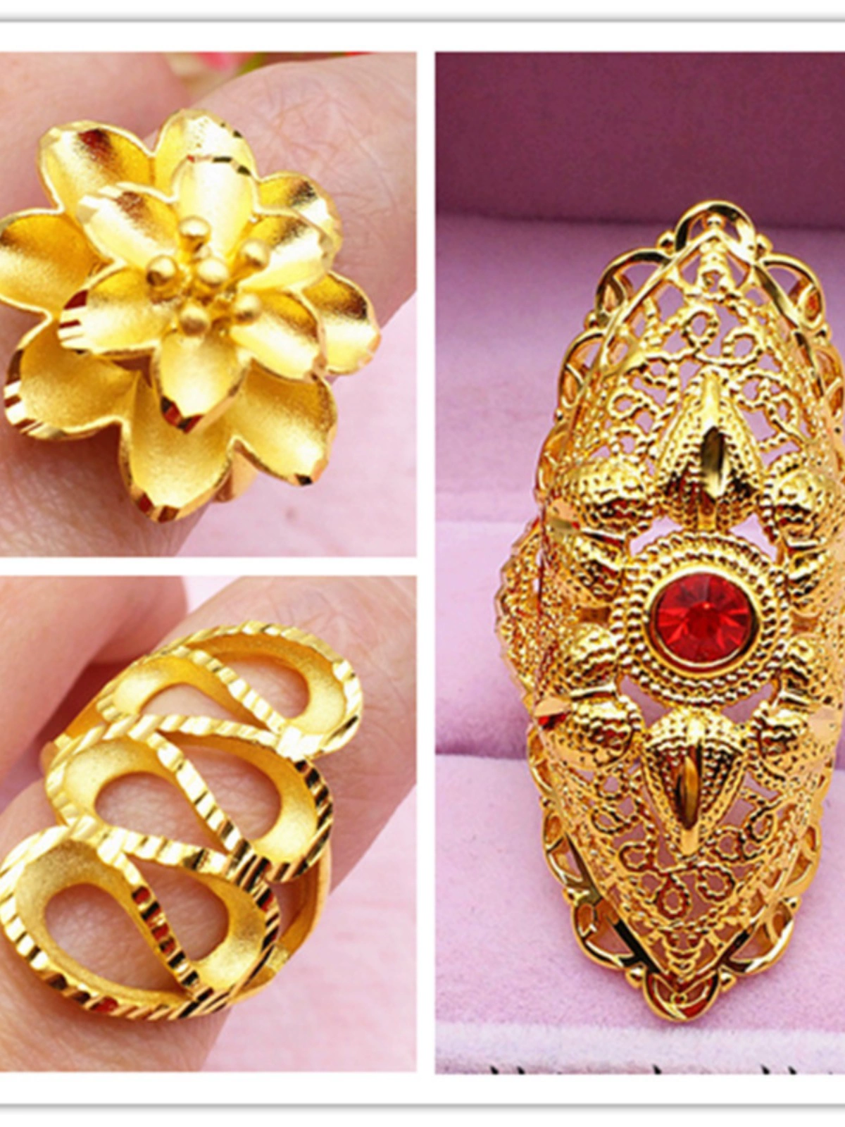 | nameOriginal | New Euro coin-plated 24k gold ring for women, exaggerated flower peacock imitation Vietnamese sand gold ring jewelry |