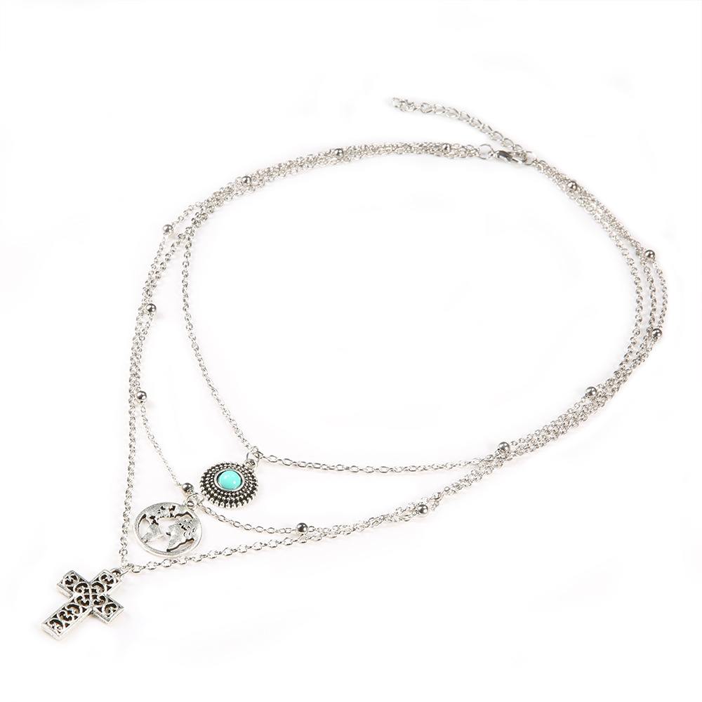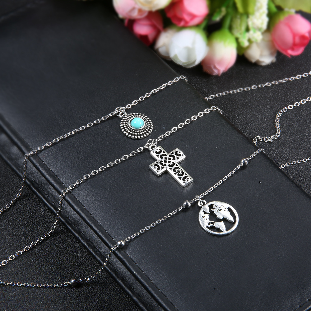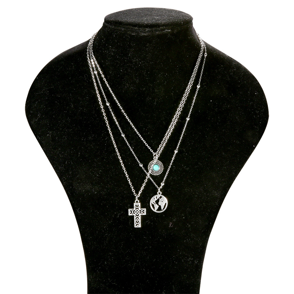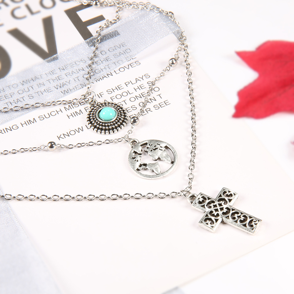 | nameOriginal | New European and American cross-border exclusive personalized cross turquoise map three-tier necklace |